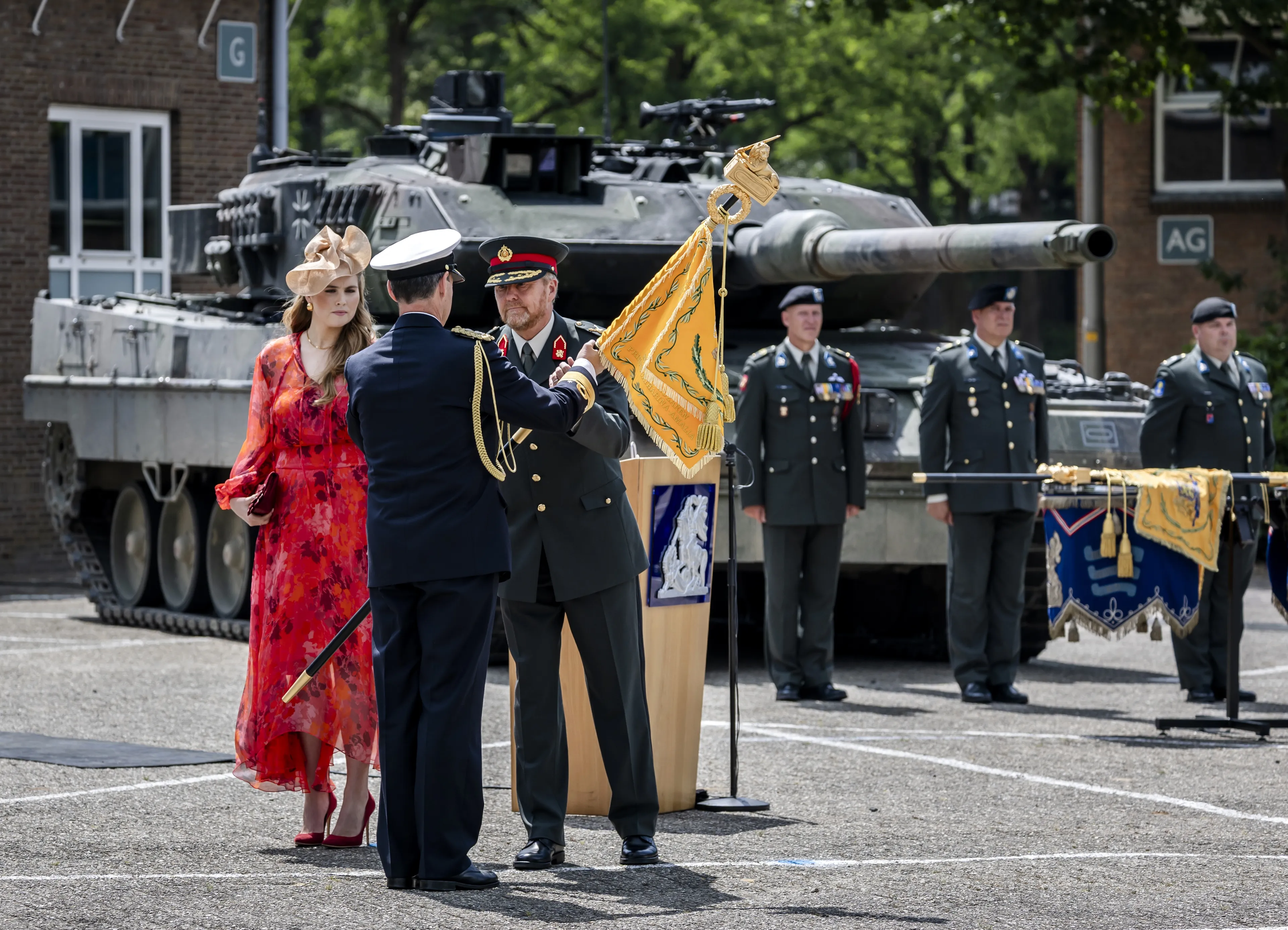 Bij een nieuw regiment hoort óók het uitreiken van een nieuw vaandel. In het bijzijn van zijn oudste dochter prinses Amalia, naar wie het regiment is vernoemd, voerde koning Willem-Alexander de ceremonie uit. Na de uitreiking werd het gezelschap muzikaal getrakteerd op de regimentsmars.