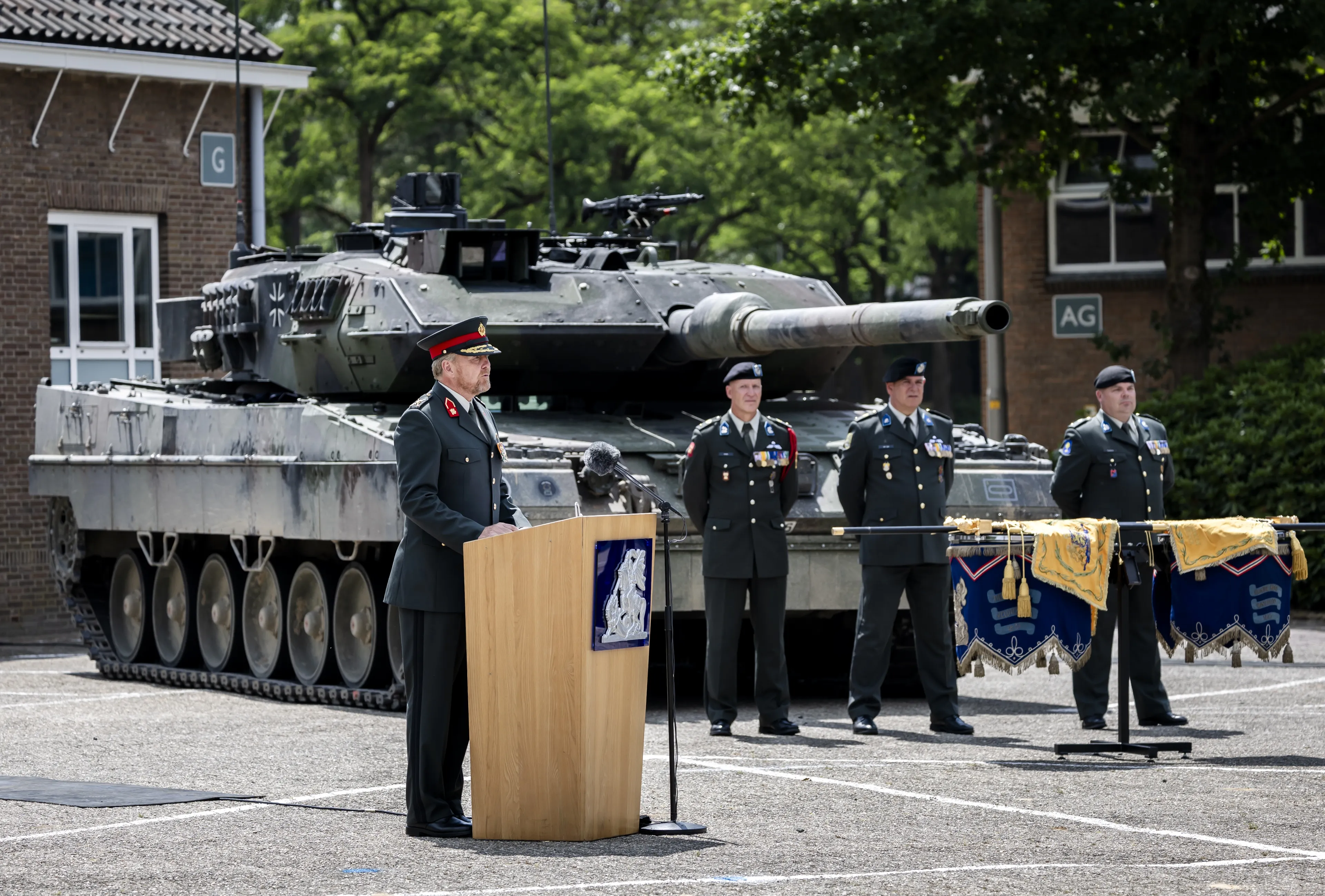 Na dit historische moment gaf koning Willem-Alexander een toespraak. Hij sprak over de langdurige relatie tussen de regimenten en het Koninklijk Huis. Het regiment dat vernoemd is naar Amalia benadrukt de waarde van de cavalerie en de gevechtstank voor de landmacht. Aangezien dit ook een Duits-Nederlandse samenwerking met tanks betreft, schakelde Willem-Alexander halverwege over naar het Duits.