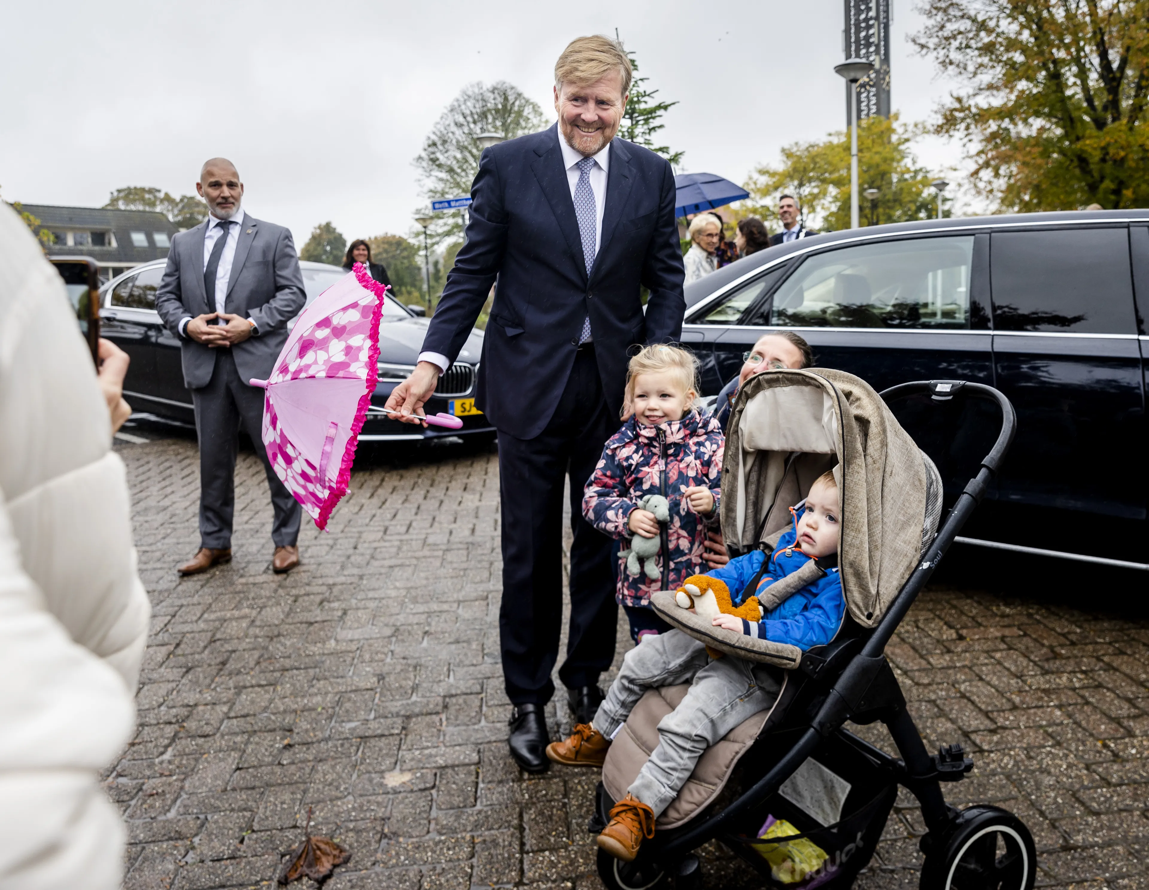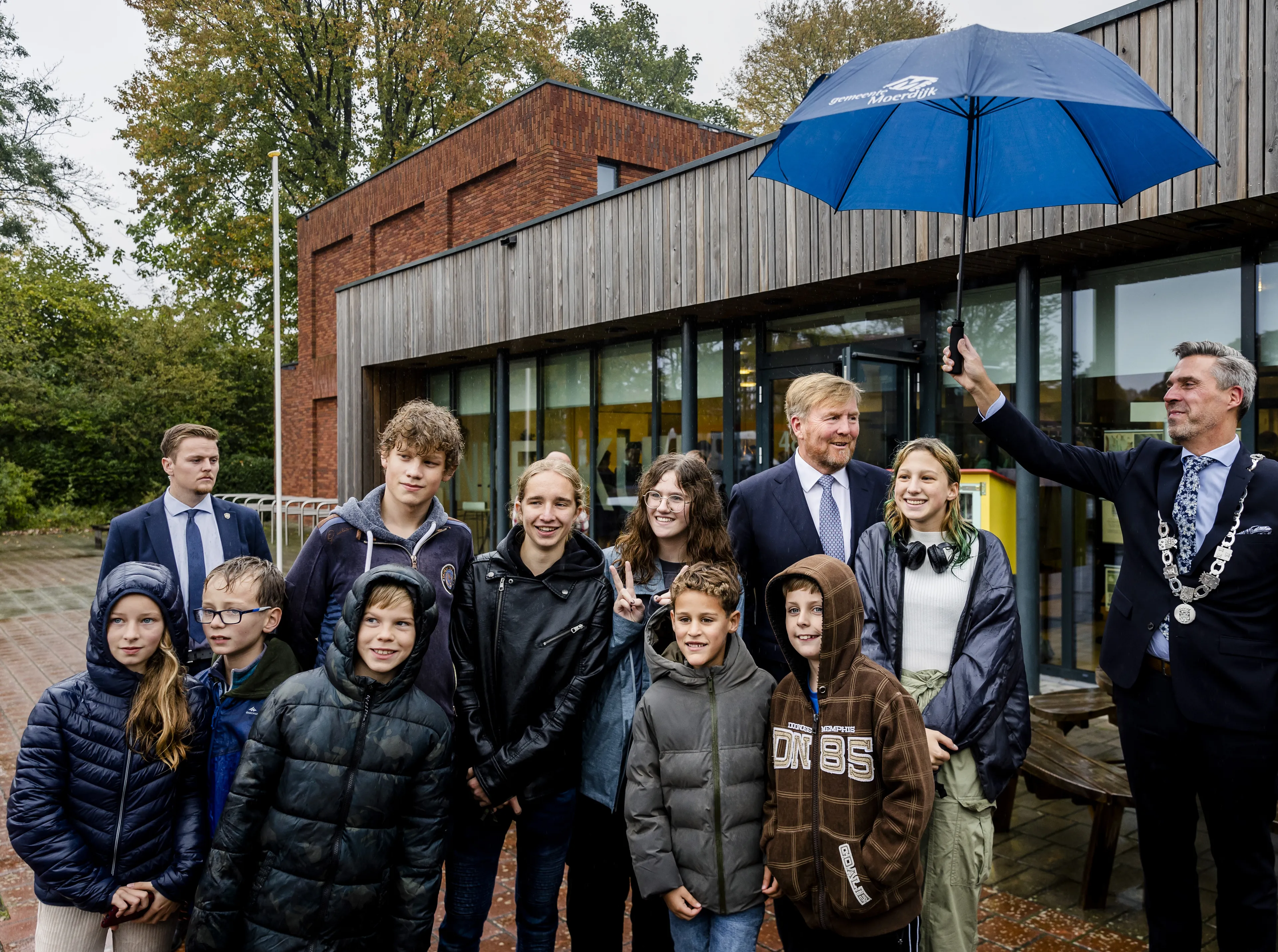 Na een lange middag vol gesprekken over een volgens de koning "belangrijk onderwerp", nam Willem-Alexander afscheid en ging hij buiten voor vertrek nog even op de foto met de lokale jeugd die een glimp van de koning probeerde op te vangen.