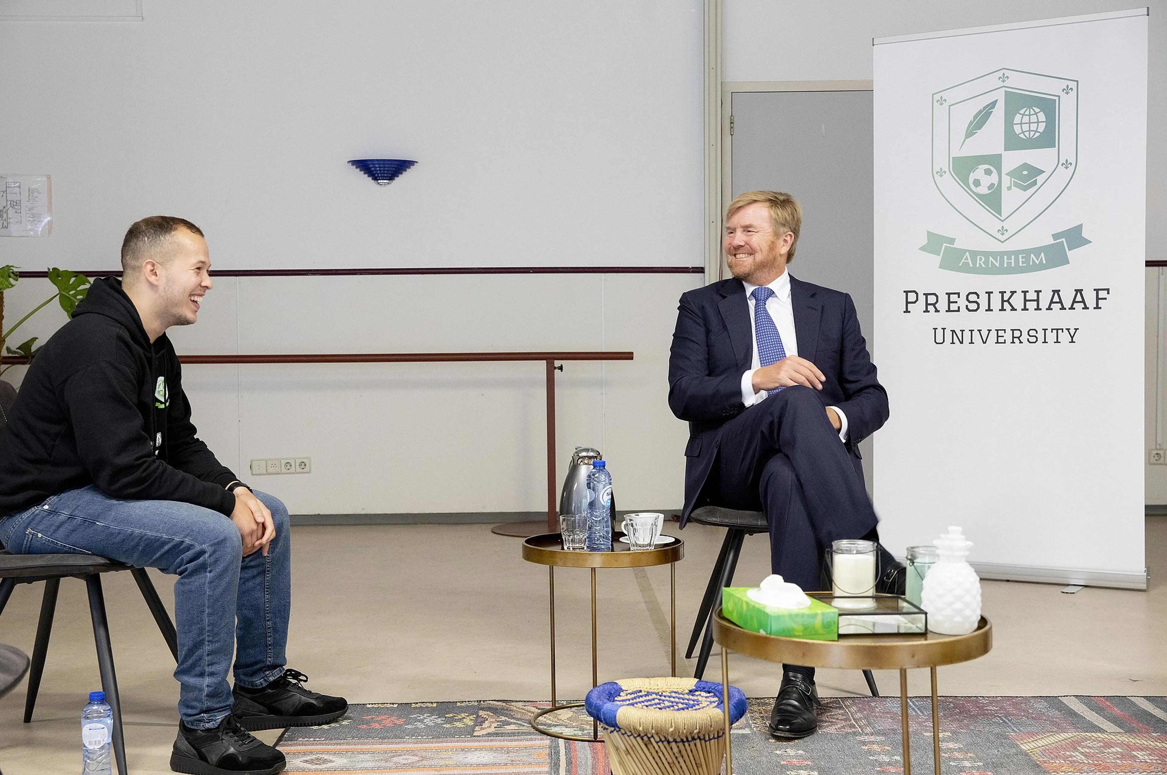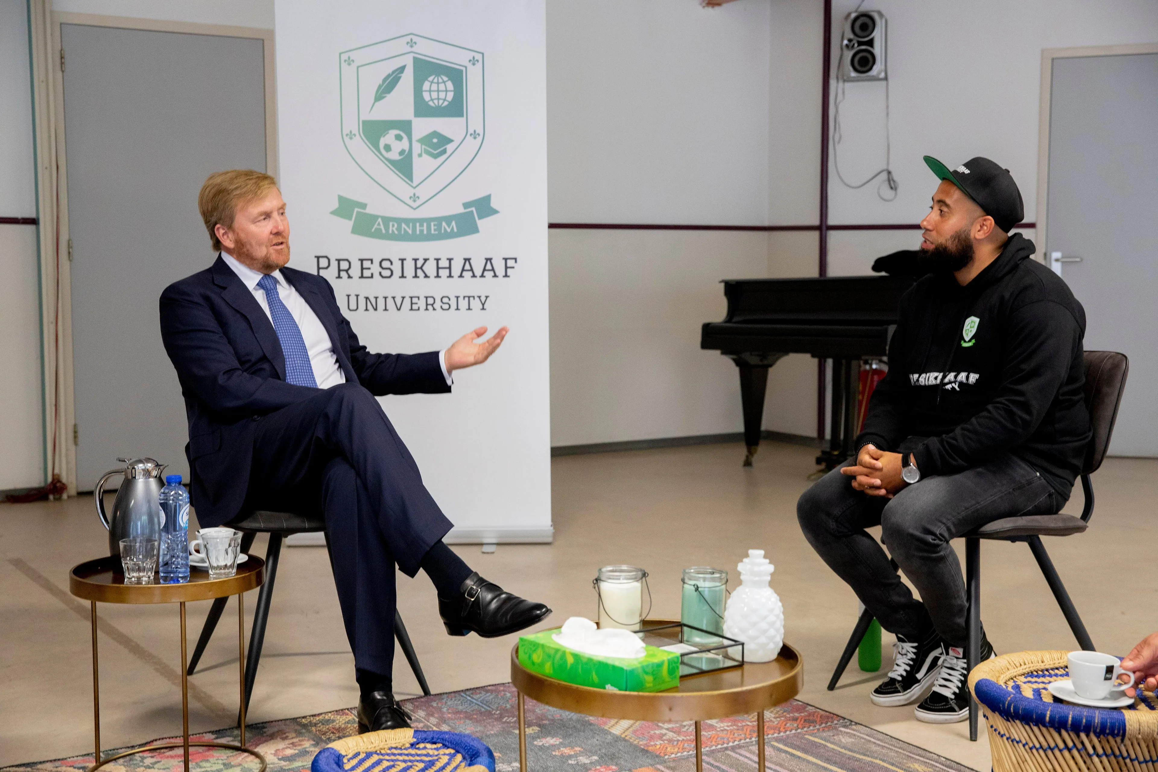 Het bezoek werd afgesloten bij Presikhaaf University, een plek waar jongeren die thuis weinig structuur kennen worden geholpen met hun huiswerk en mee kunnen doen aan onder andere sport- en wijkactiviteiten. Hier ging de Koning in gesprek met de initiatiefnemers over het belang van positieve rolmodellen en vertrouwenspersonen. Afsluitend volgde een gesprek met moeders uit de wijk Presikhaaf over hun zorgen rond het opgroeien van jongeren op een plek waar zij gemakkelijk in aanraking komen met criminaliteit.