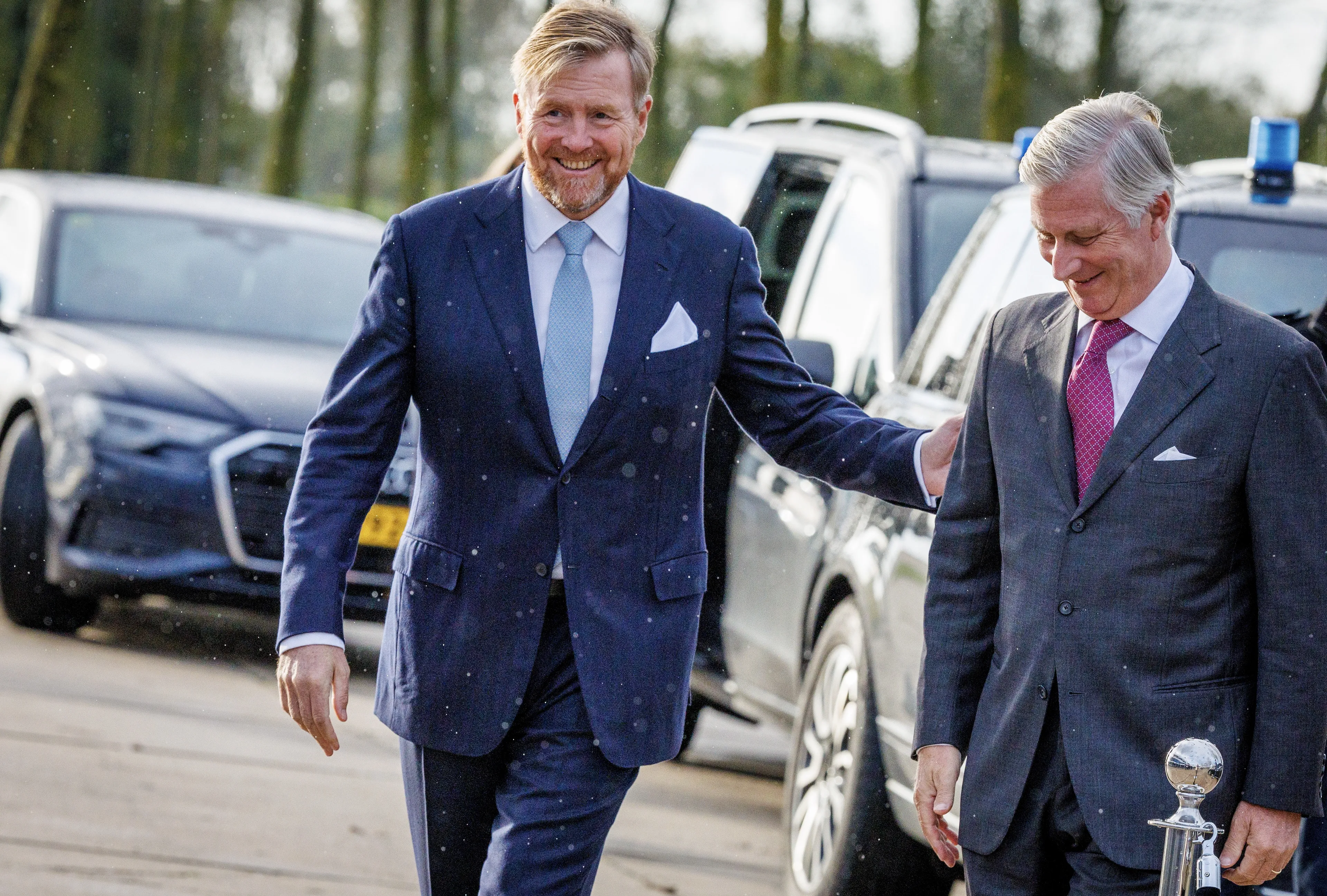 Vlak voor de koningen afscheid van elkaar nemen, krijgt Willem-Alexander nog een klein presentje van Filip. Het betreft een foto van koningin Juliana en koning Boudewijn, die in 1968 het Kanaal Gent-Terneuzen openden. Iets na 11 uur vertrekken de koningen weer elk naar hun eigen woonpaleis.
