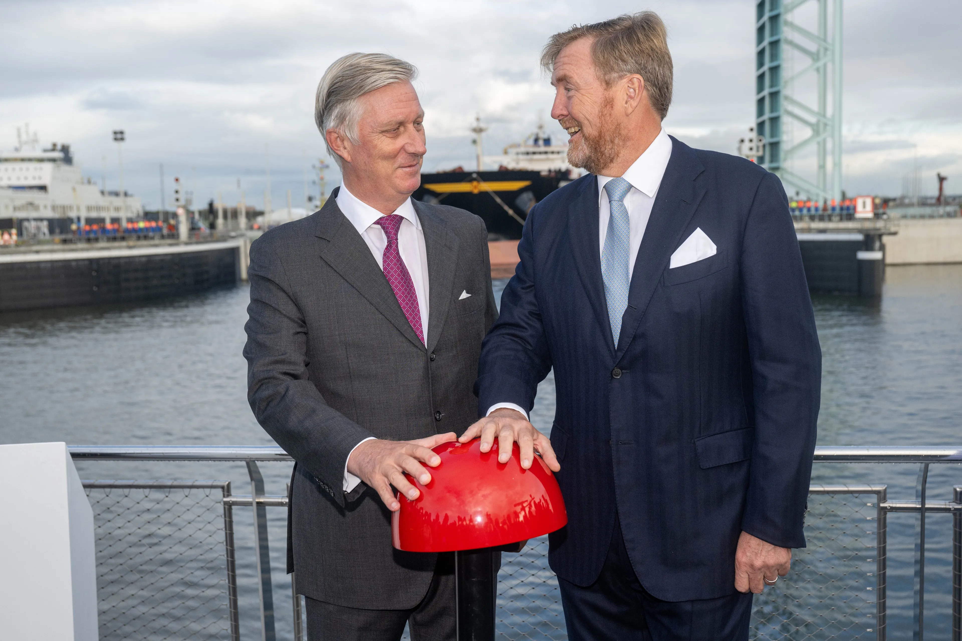 Koning Willem-Alexander en koning Filip openen samen sluis in Terneuzen