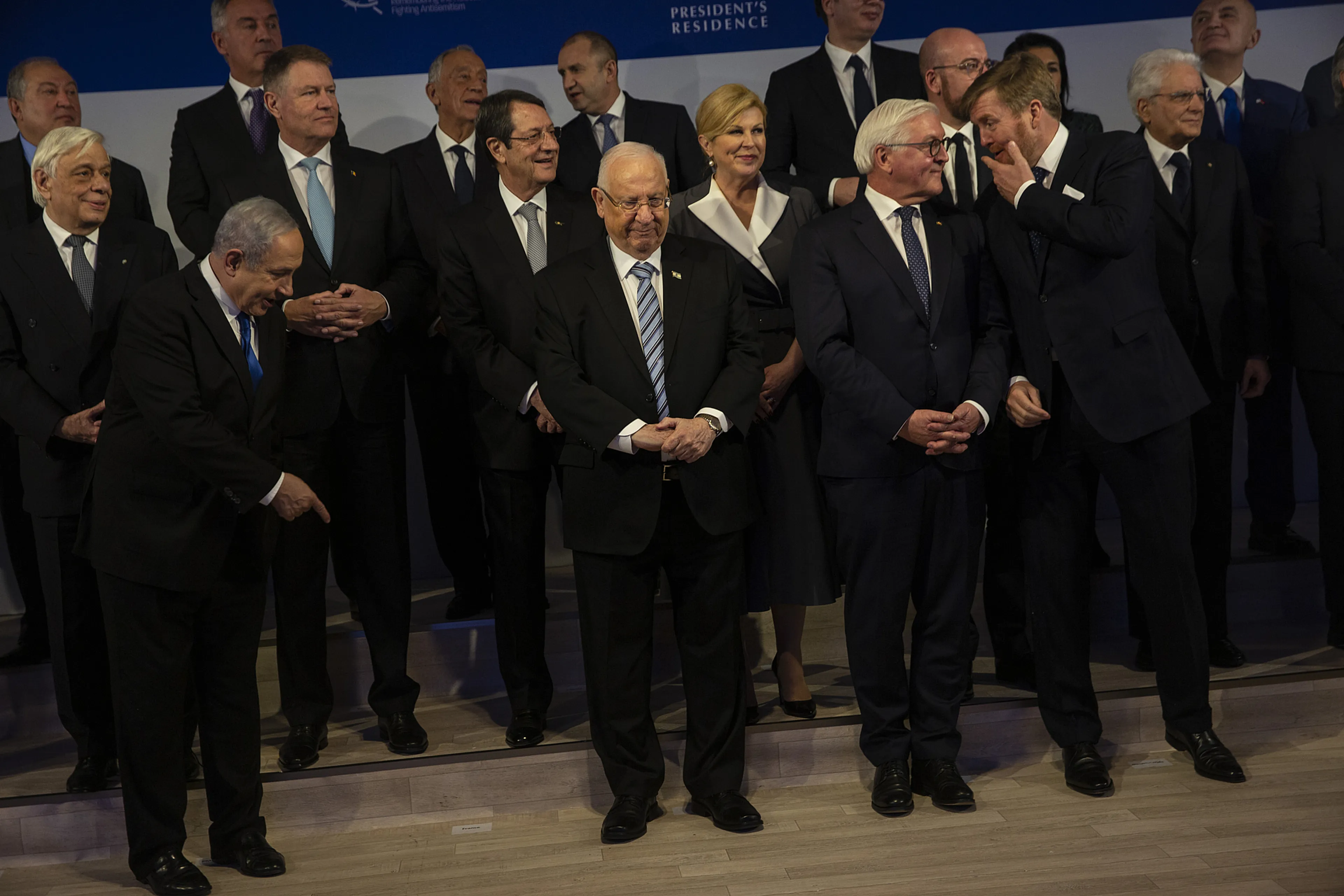 President Rivlin begroette zijn gasten bij binnenkomst, en hij kreeg een warme omhelzing van koning Felipe. Rivlin was ook de eerste die het woord voerde aan tafel. Hij sprak van een historische samenkomst, die in het teken stond van de globale strijd tegen antisemitisme, de herdenking van de Holocaust - de moord op zes miljoen Joden door nazi-Duitsland - en de 75e verjaardag van de bevrijding van vernietigingskamp Auschwitz-Birkenau.