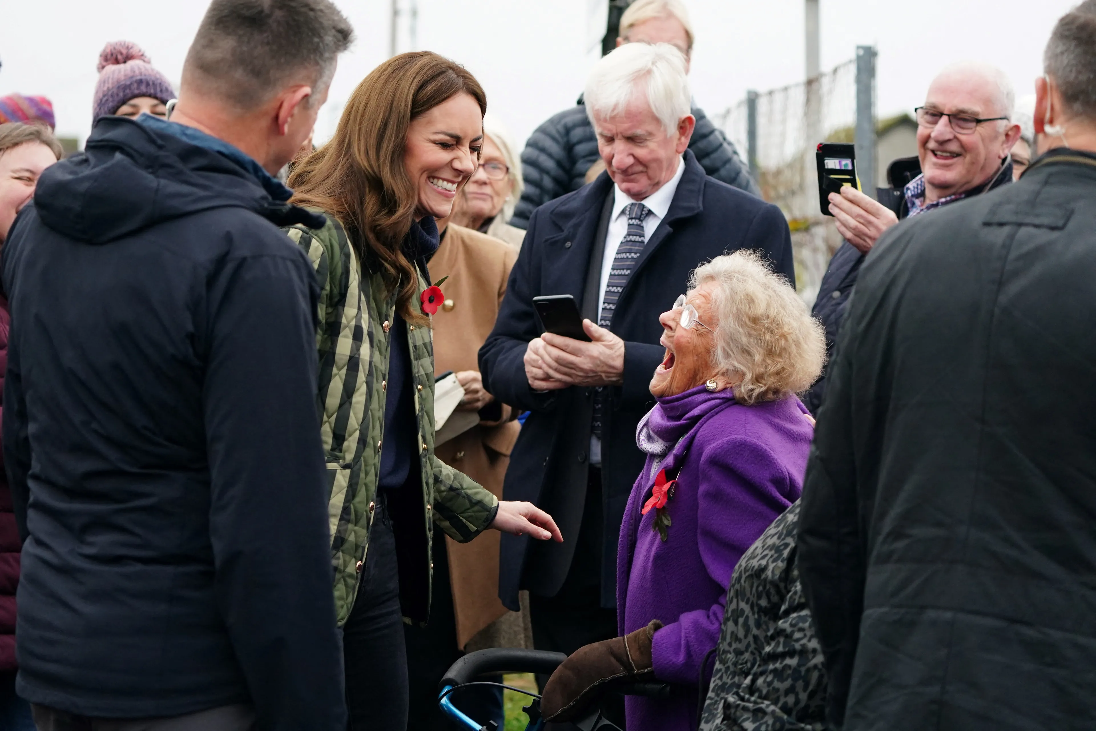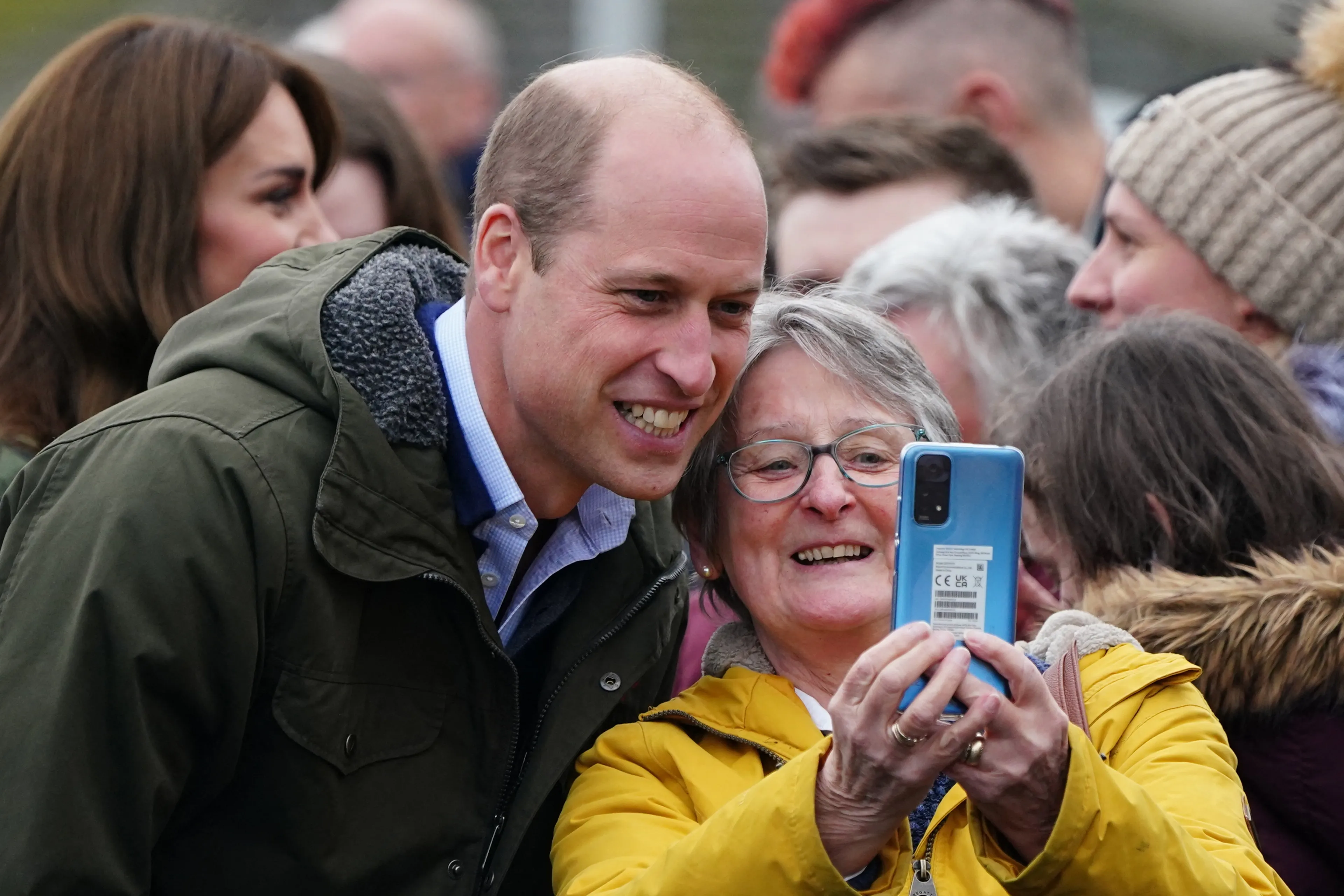 En natuurlijk nemen William en Catherine ook even de tijd om met fans te praten. Zo mag deze gelukkige vrouw op de foto met de hertog.