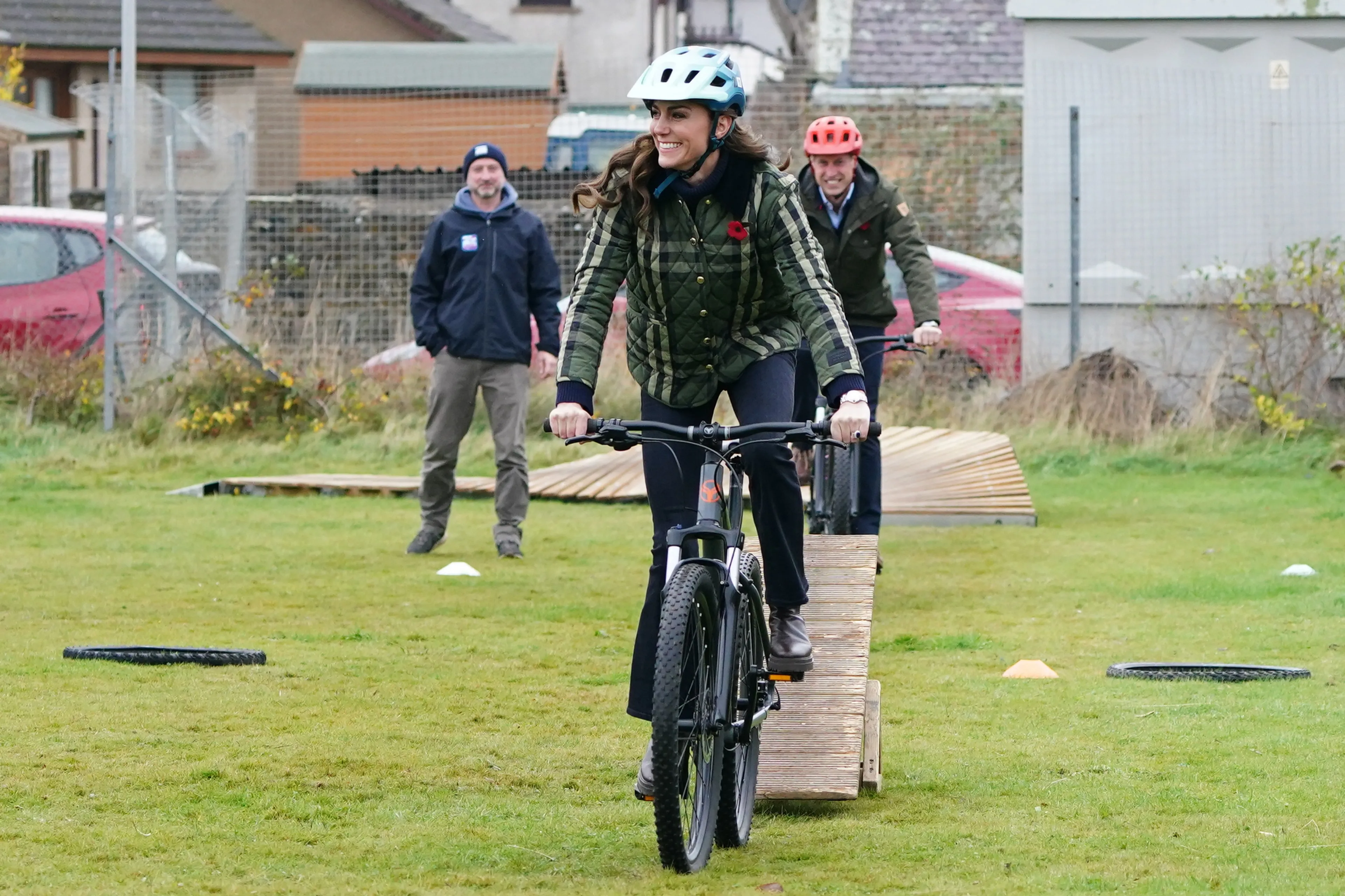 De royals beginnen de dag in Burghead, waar ze een bezoek brengen aan Outfit Moray. Deze liefdadigheidsinstelling organiseert verschillende buitenactiviteiten voor kinderen en jongeren. Maar de hertog en hertogin van Rothesay zijn er niet alleen om te kijken naar de activiteiten. Ze zetten zelf ook een helm op en springen op een mountainbike voor een kort tochtje over een parcours.