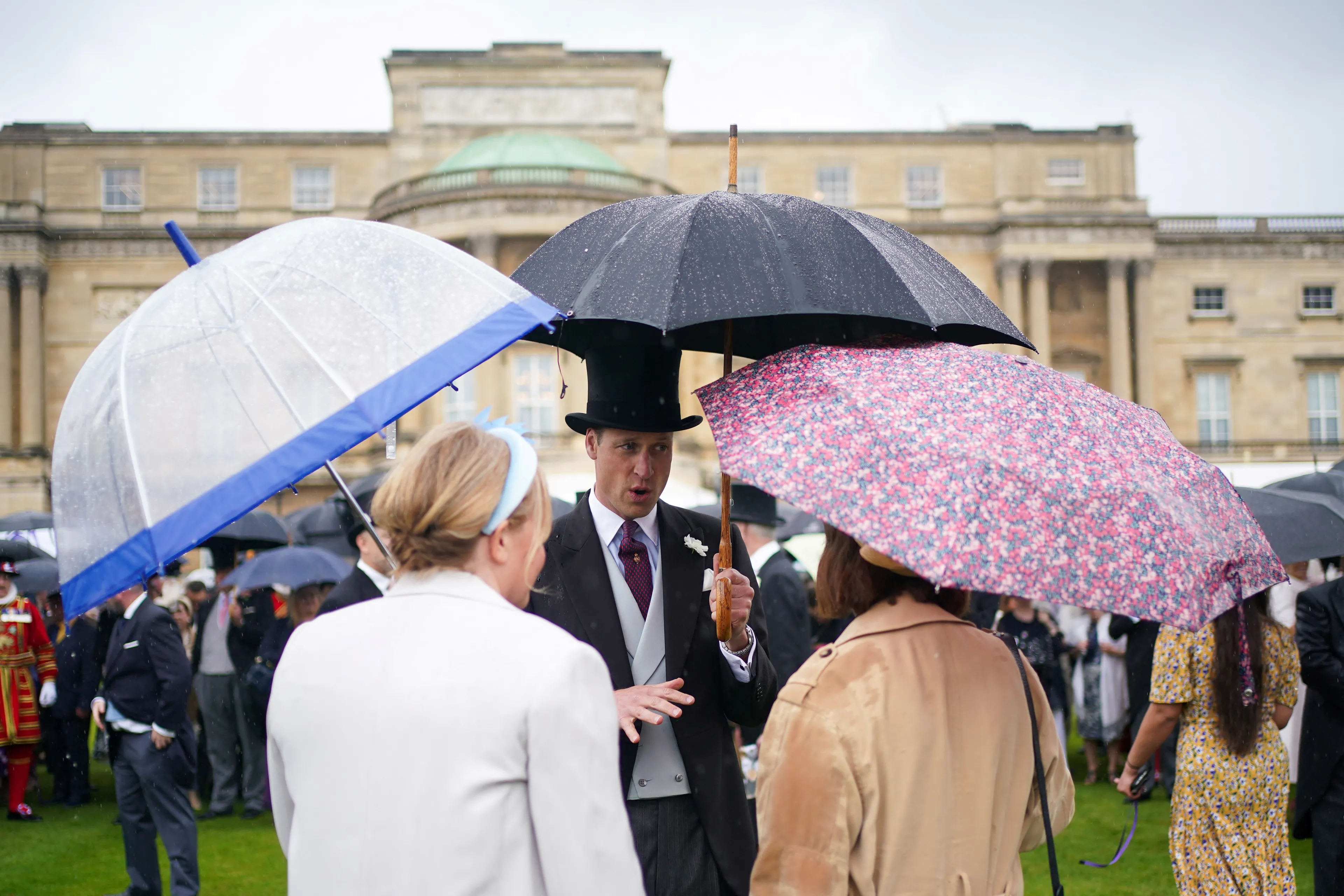 Afgelopen dinsdag was het de taak aan prins William om gastheer te zijn van een van de tuinfeesten. Het druilerige weer mocht de pret niet drukken, want Buckingham Palace ontving zo'n 8000 gasten. De prins van Wales werd hierbij vergezeld door Zara Tindall, dochter van prinses Anne, en de prinsessen Beatrice en Eugenie, dochters van prins Andrew. De drie nichten van prins William zagen er, geheel volgens de etiquette, uit om door een ringetje te halen. Kijk maar!