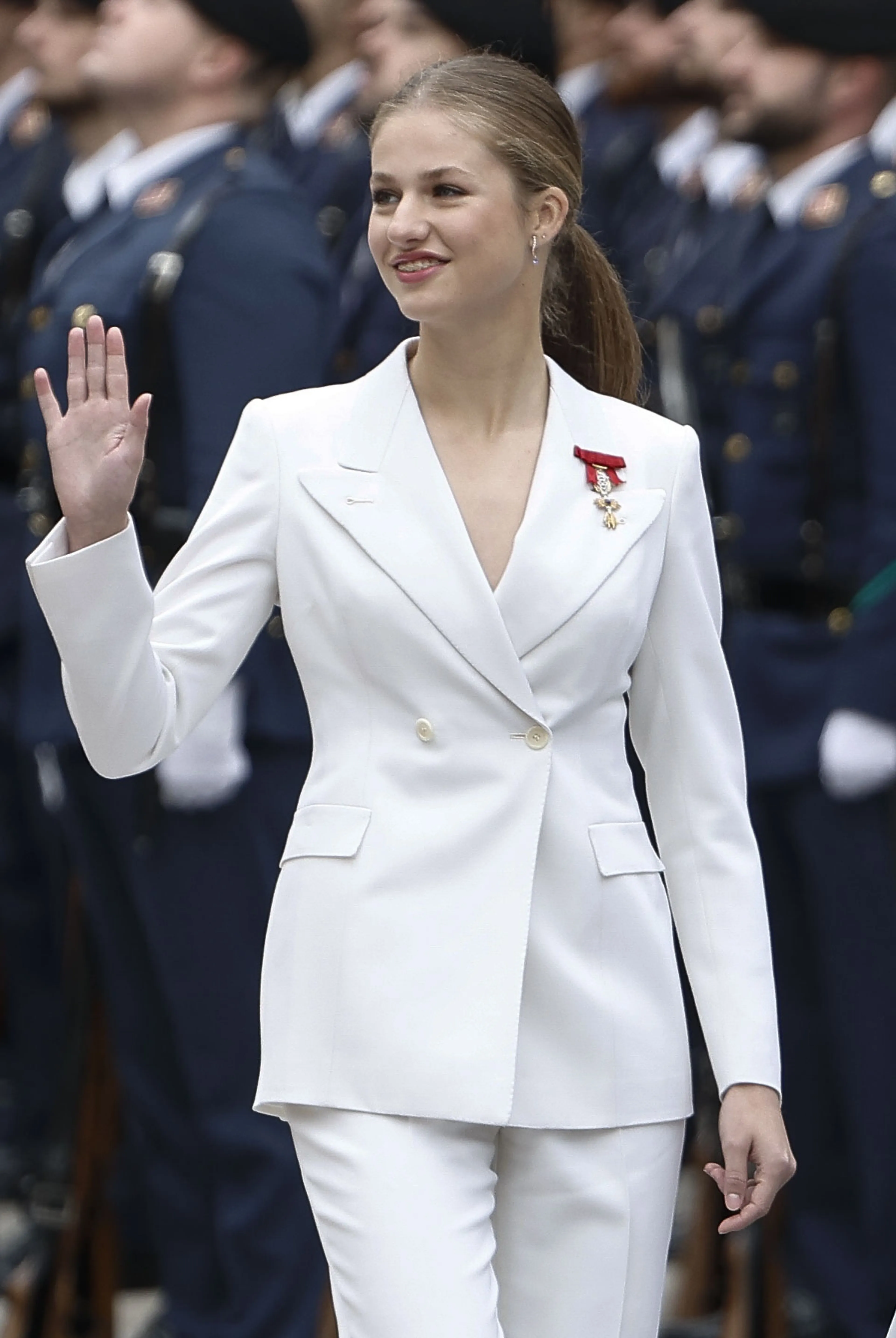 Prinses Leonor vierde haar 18e verjaardag in een smetteloos wit pak van het Spaanse merk Sasteria Serna. Daarmee lijkt ze op en top koninklijk en gaat ze mee met de modetrends.Veel royals gingen haar namelijk voor.