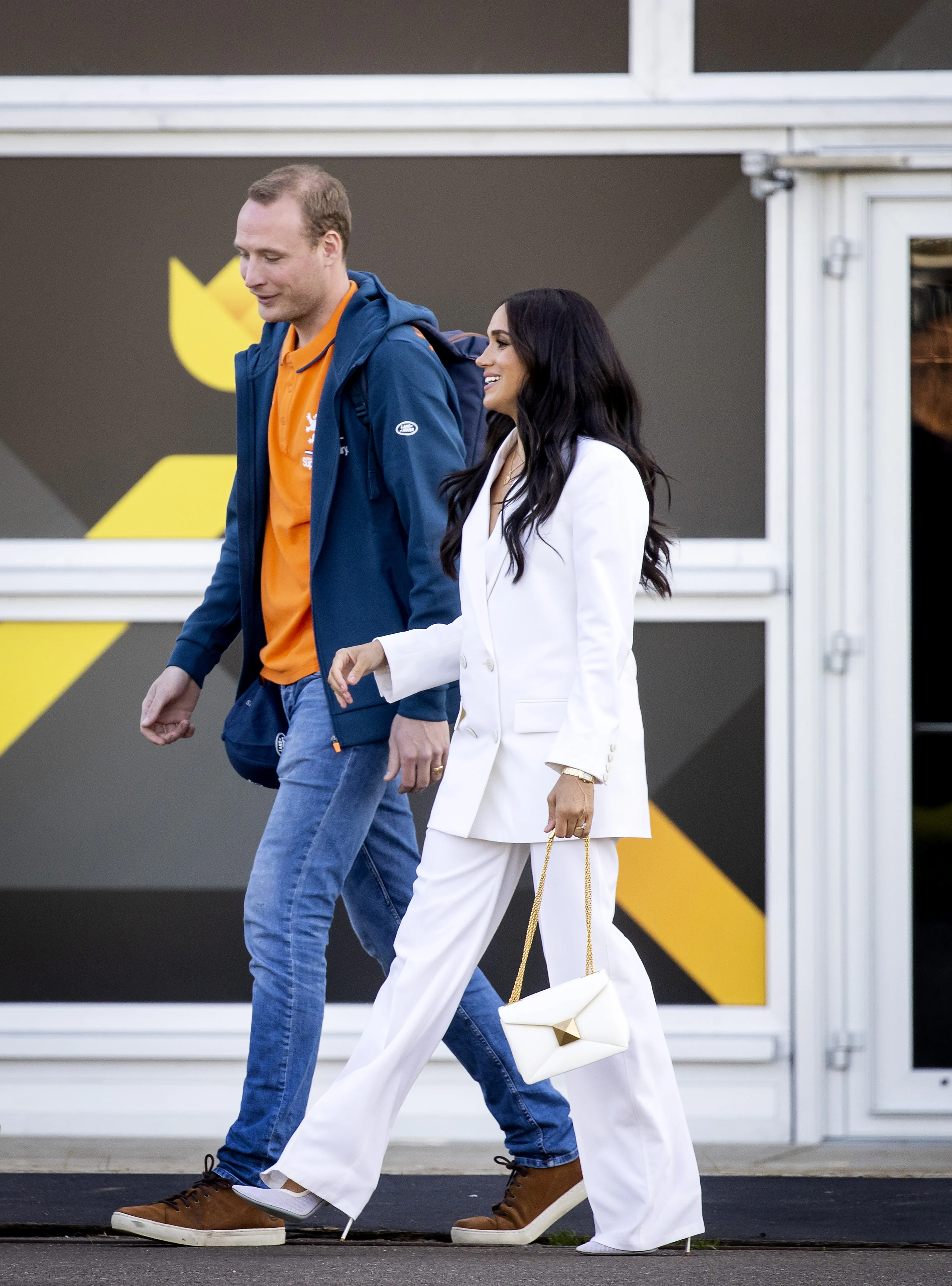 De vrouw van prins Harry, hertogin Meghan staat bekend om haar minimalistische en geraffineerde outfits. In modeland noemen ze dat ook wel 'quiet luxury'. Het is dan ook niet gek dat de hertogin regelmatig in een wit pak de deur achter zich dicht trekt. Zo had ze tijdens de Invictus Games vorig jaar in Den Haag nog een schitterend wit kostuum aan.