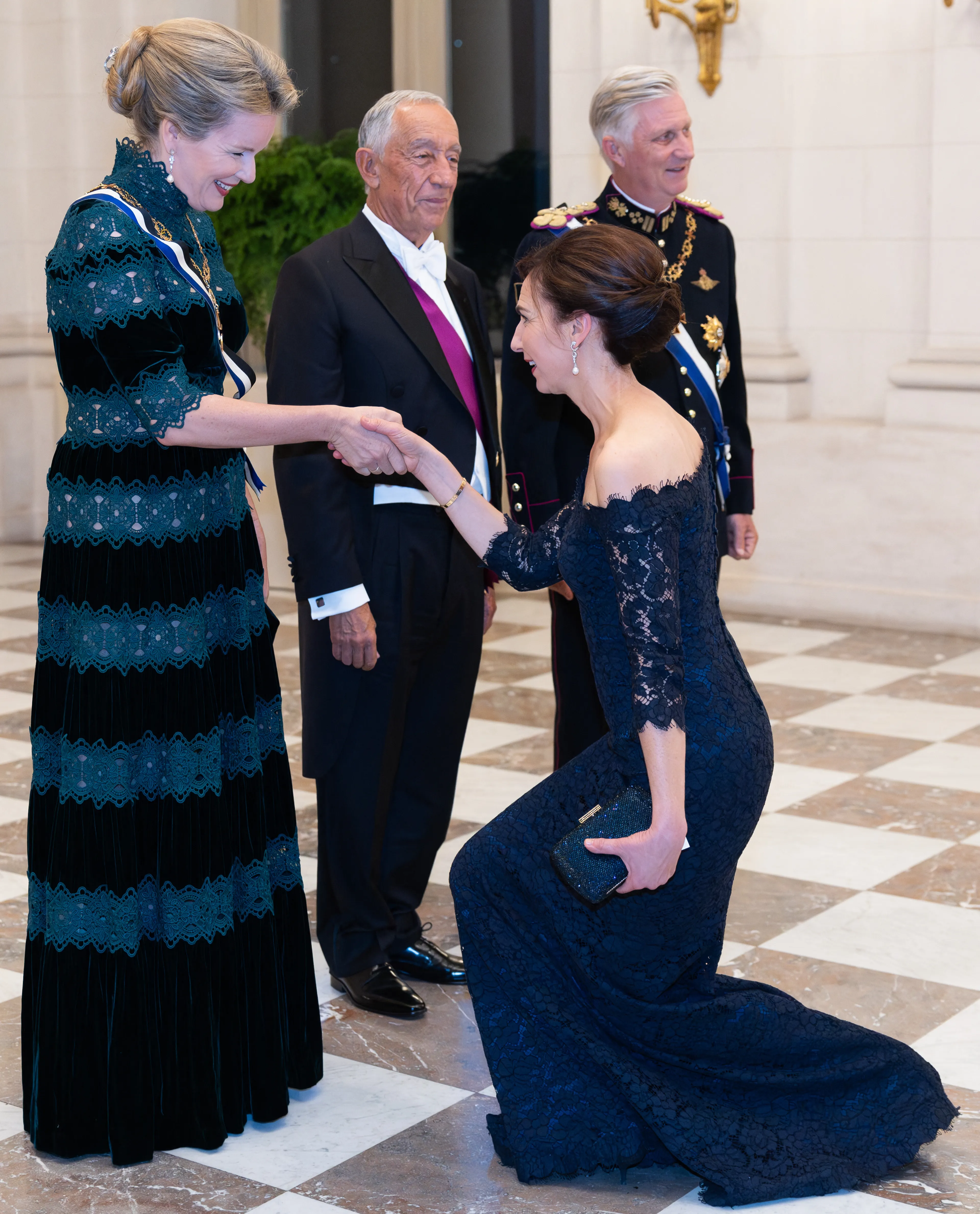 Tijdens het staatsbezoek van Nederland aan België in juni 2023 dragen beide koninginnen dezelfde schoenen. Het zijn hakken van Natan met een transparant gedeelte. Wederom kiezen de koninginnen voor verschillende kleuren. Koningin Máxima draagt bordeauxrood, koningin Mathilde oranje.