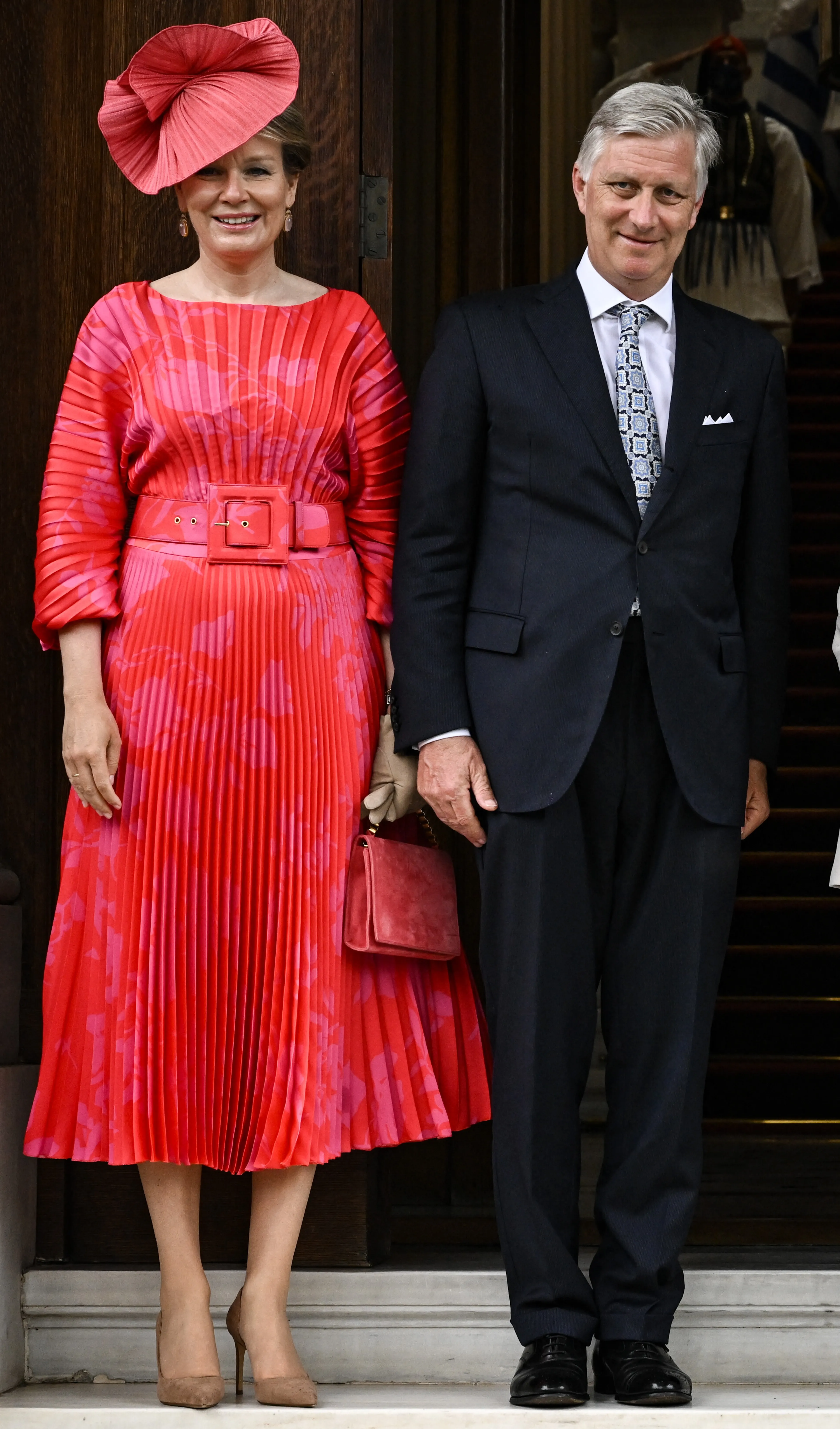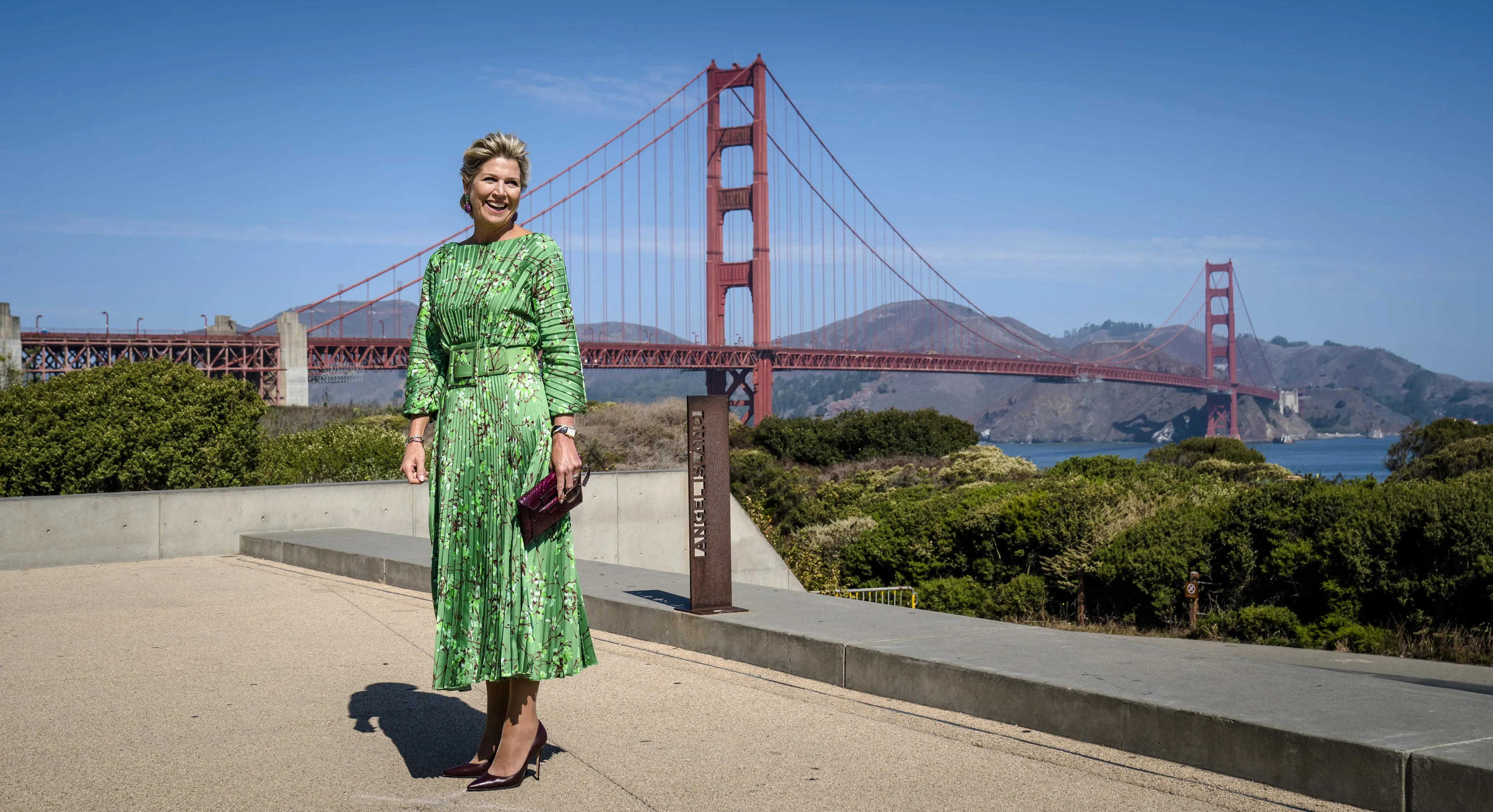 Zoals gezegd, zijn beide koninginnen dol op Natan. Tijdens een bezoek aan de Golden Gate Bridge in San Francisco draagt koningin Máxima een groene plisséjurk met riem. Koningin Mathilde heeft haar oog ook laten vallen op dit ontwerp, maar dan in het roze.