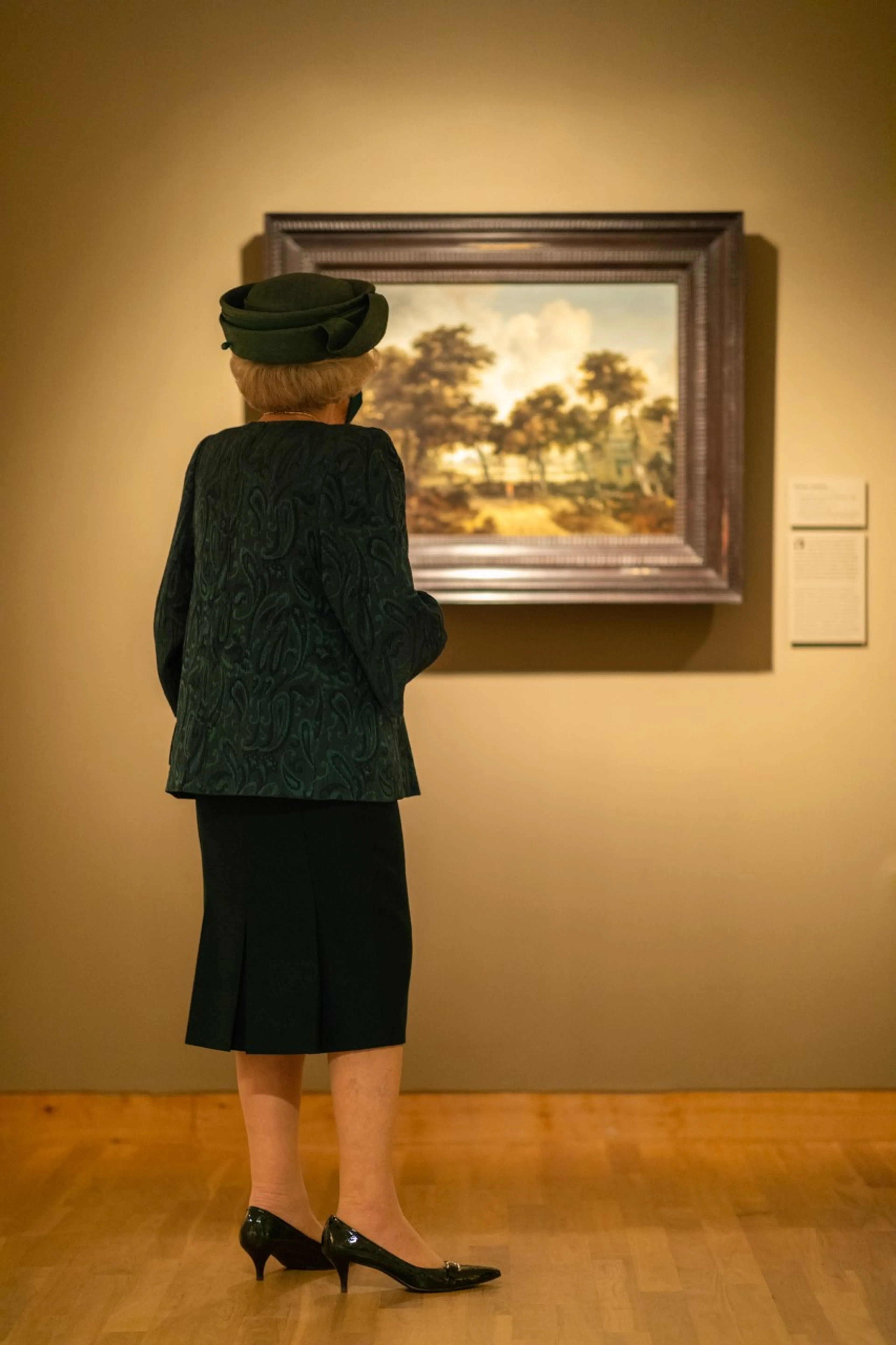 Beatrix liep vol bewondering langs de kunst. "Ontzettend inspirerend", zei ze. Bij een winterlandschap van Louis Apel merkte ze op dat die de schilderleraar was geweest van haar overgrootvader koning Willem III.