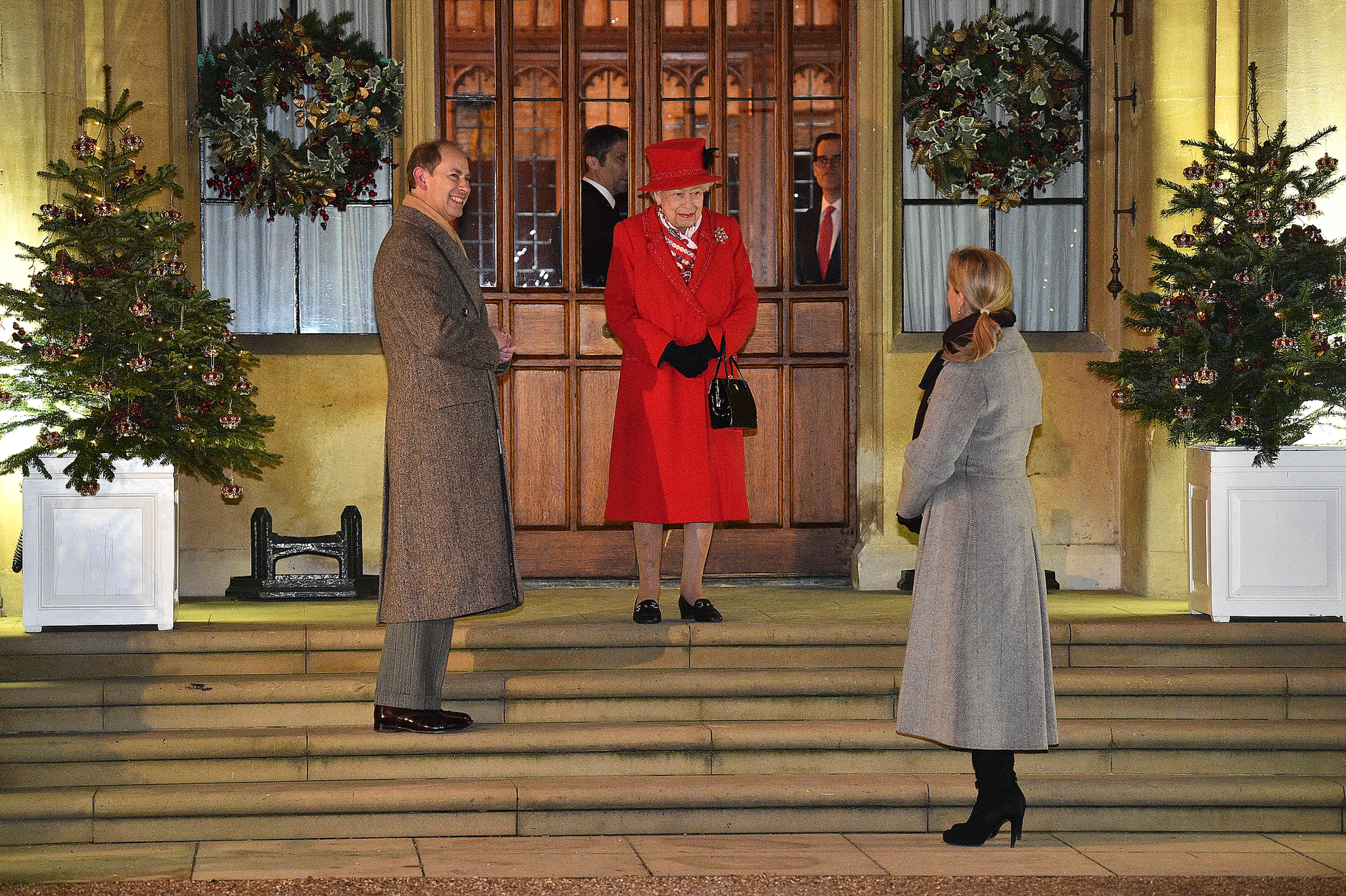 Prins Philip was afwezig, maar prins Charles en Camilla, Edward en Sophie en prinses Anne herenigden zich ook met het paar in Windsor. De familie genoot samen van verschillende kerstliedjes, gezongen door de Salvation Army Band. Deze bijeenkomst was de eerste keer dat de familie samenkwam sinds maart. Op 9 maart kwamen ze voor het laatst samen in Westminster Abbey in het kader van Commonwealth Day.