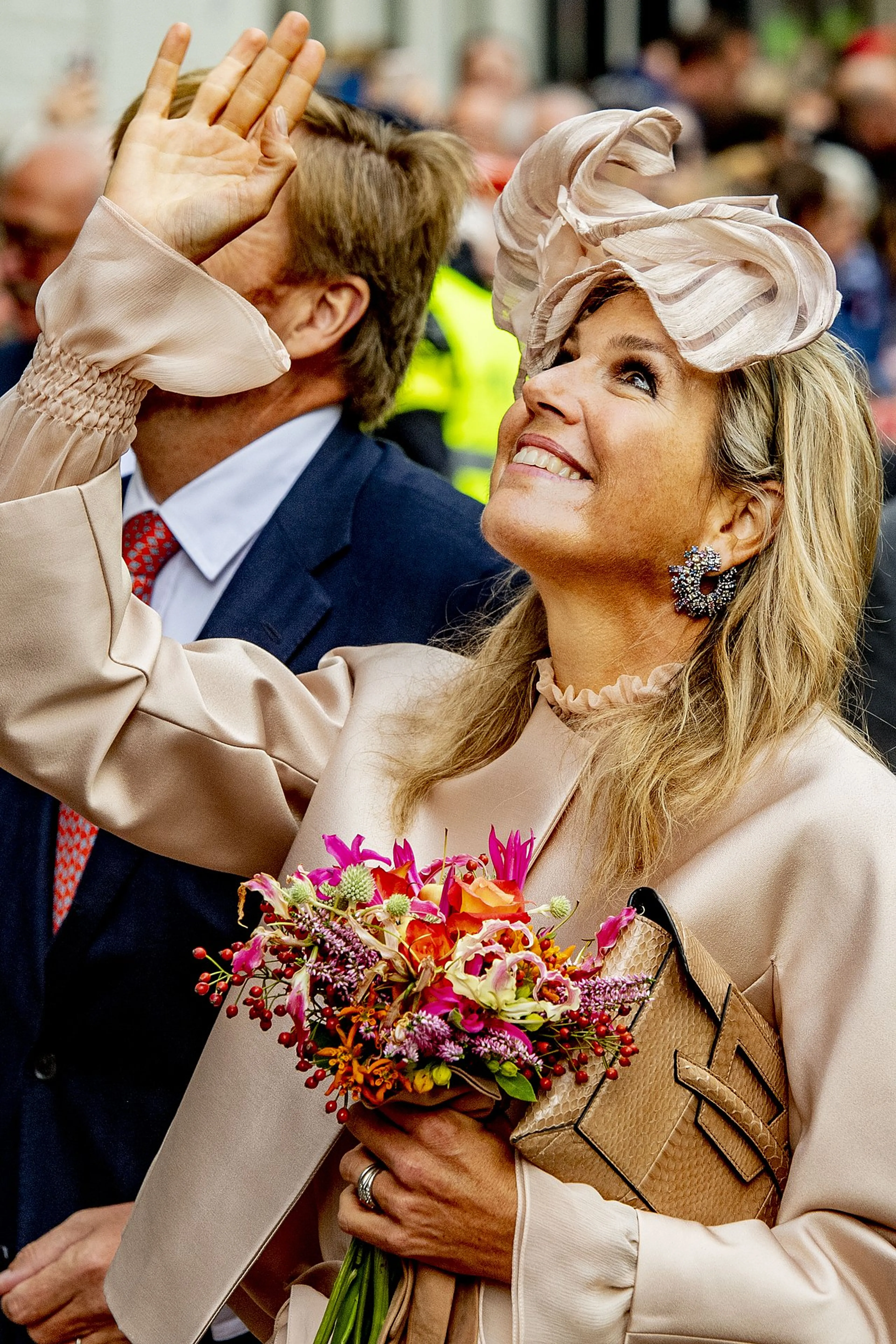 De dag van Máxima begon in Hoogeveen waar ze samen met Willem-Alexander initiatieven bezocht van bedrijven en bewoners om hun dorp of stad zo leefbaar mogelijk te maken. Om tien uur 's ochtends kwam de koningin ten tonele in haar outfit van Natan.