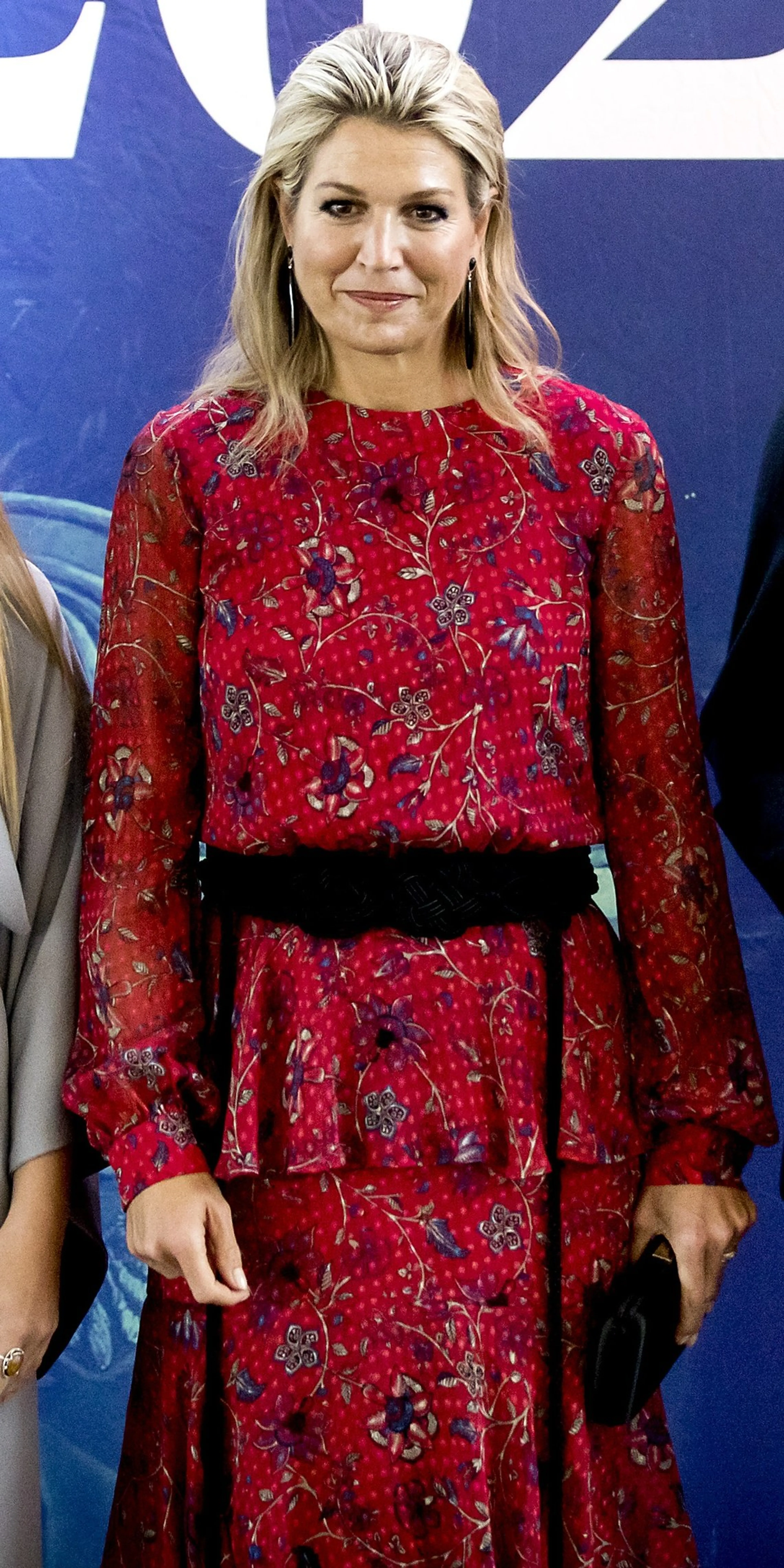 Koningin Máxima had woensdag een drukke dag. Na het streekbezoek in Drenthe werd de koningin verwacht bij de Willem I Lezing over ondernemerschap in Leusden. In de tussentijd veranderde ze haar outfit. Máxima verwisselde haar culotte, blousje en jasje van Natan voor een japon met bloemenprint. De ontwerper is niet bekend.