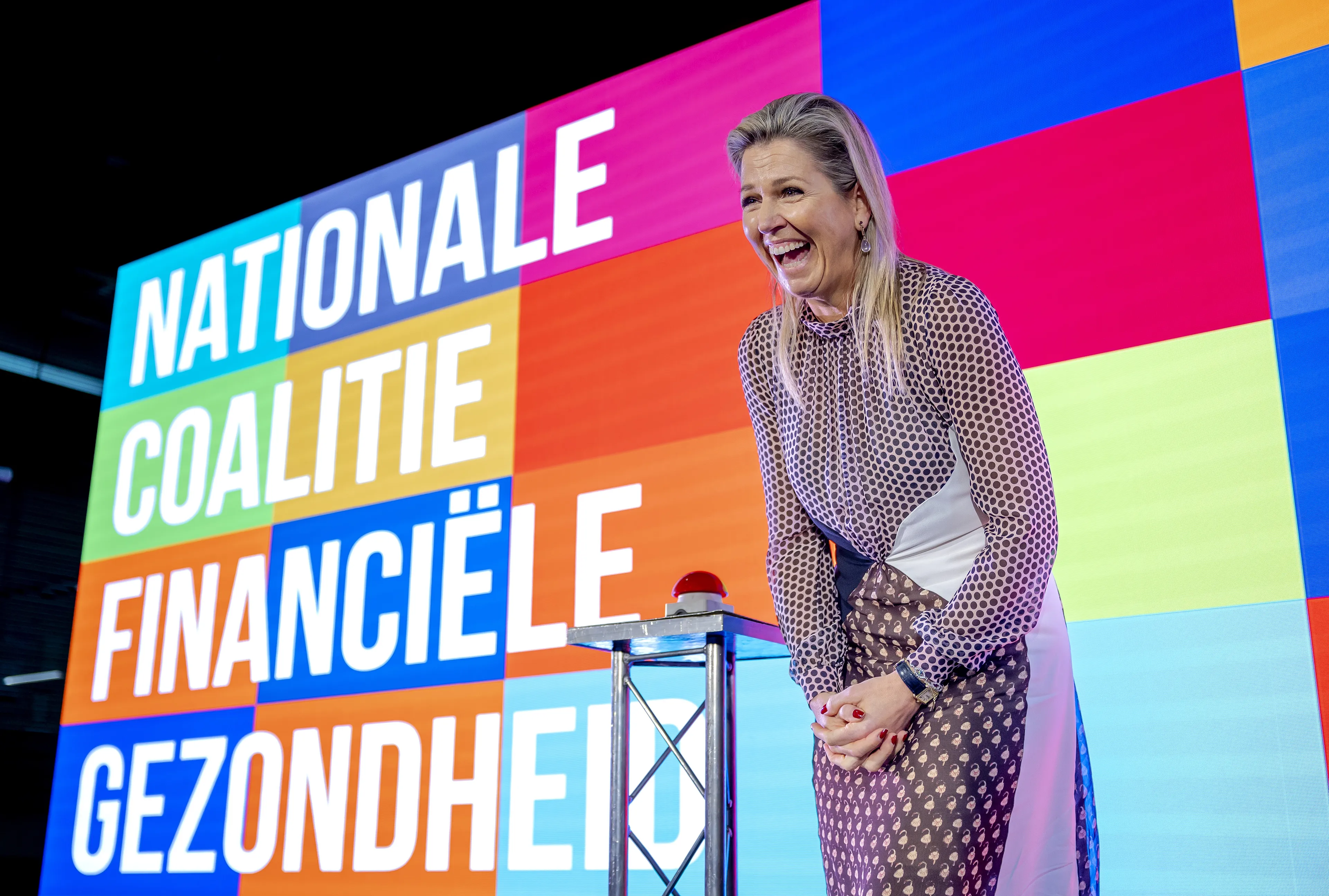 Een dag later was Máxima bij het hoofdkantoor van de ABN AMRO in Amsterdam. Daar lanceerde zij, in haar functie als erevoorzitter van de stichting Schuldenlab, de Nationale Coalitie Financiële Gezondheid. Met dit samenwerkingsverband kunnen bedrijven hun werknemers helpen die schulden hebben.