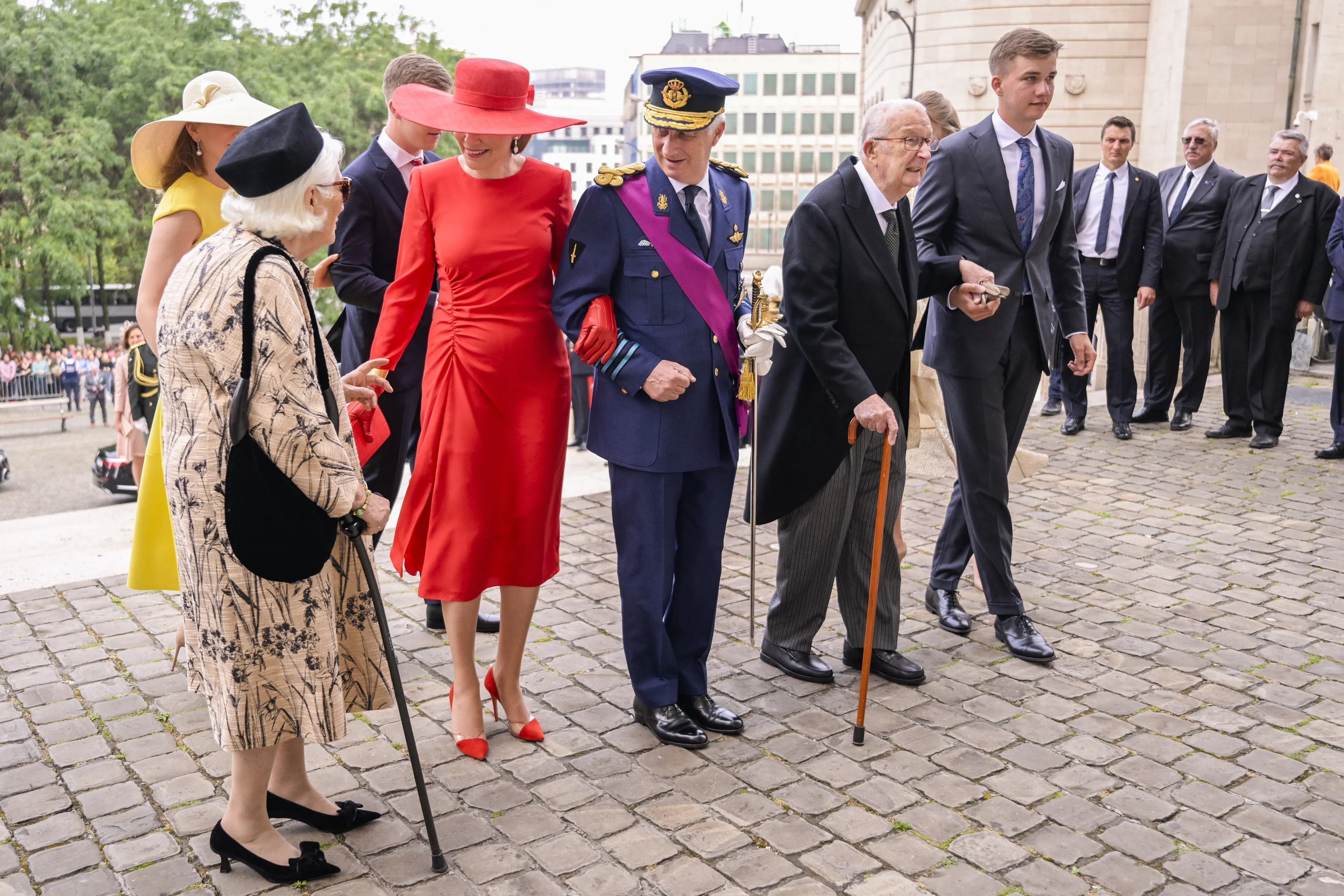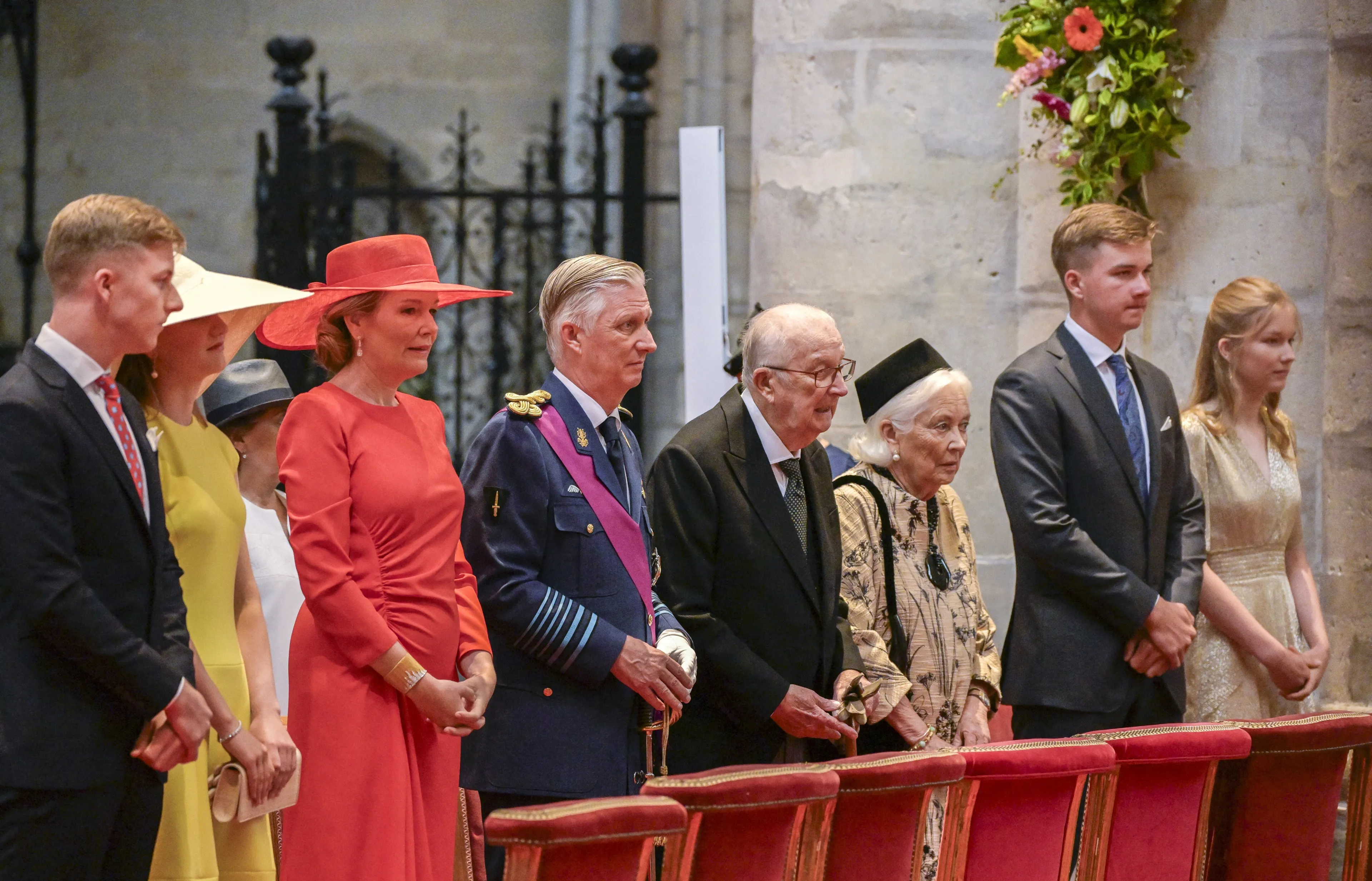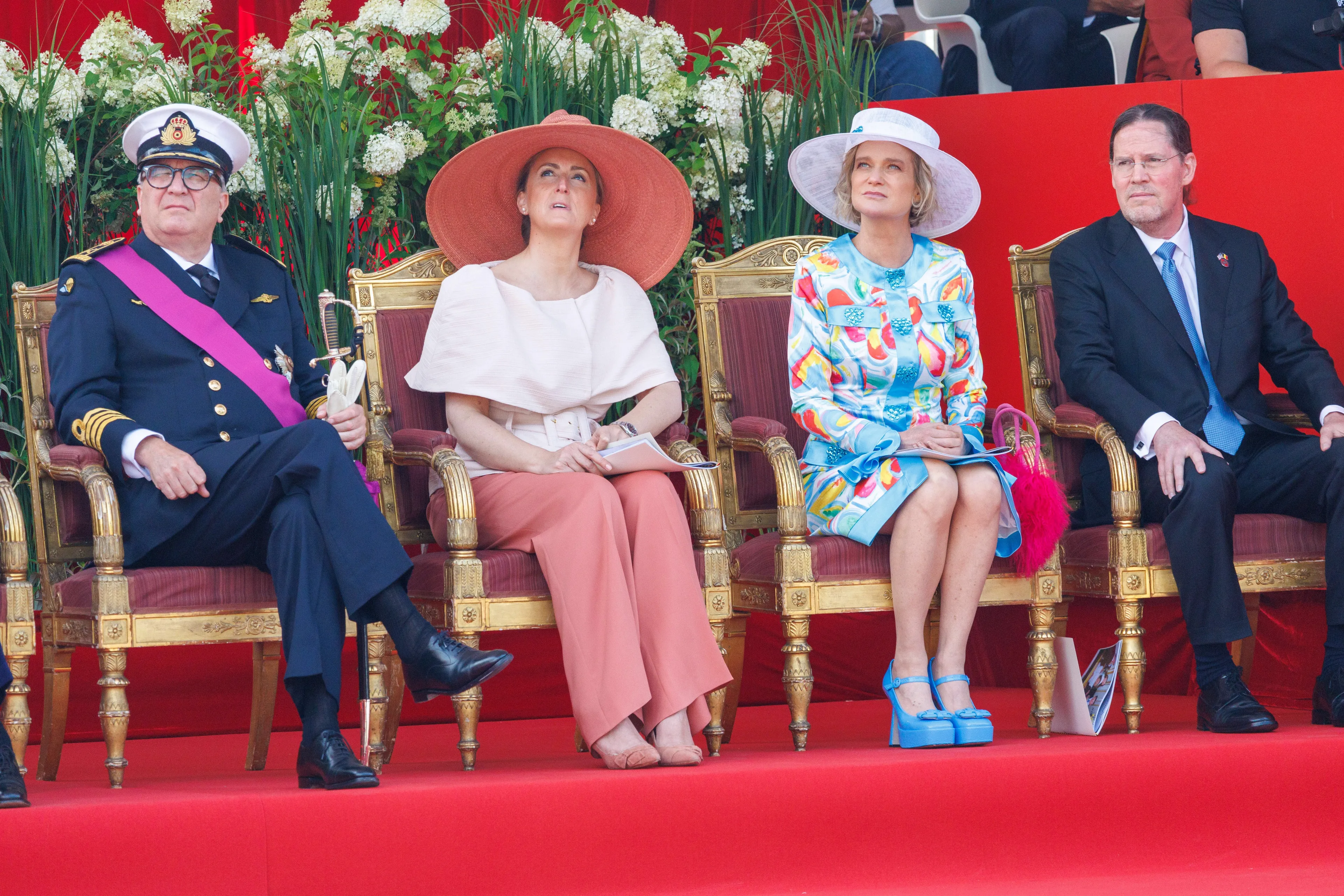 Ook prinses Astrid en prins Lorenz, prins Laurent en prinses Laurent en prinses Delphine en haar partner James O'Hare zijn hierbij aanwezig.