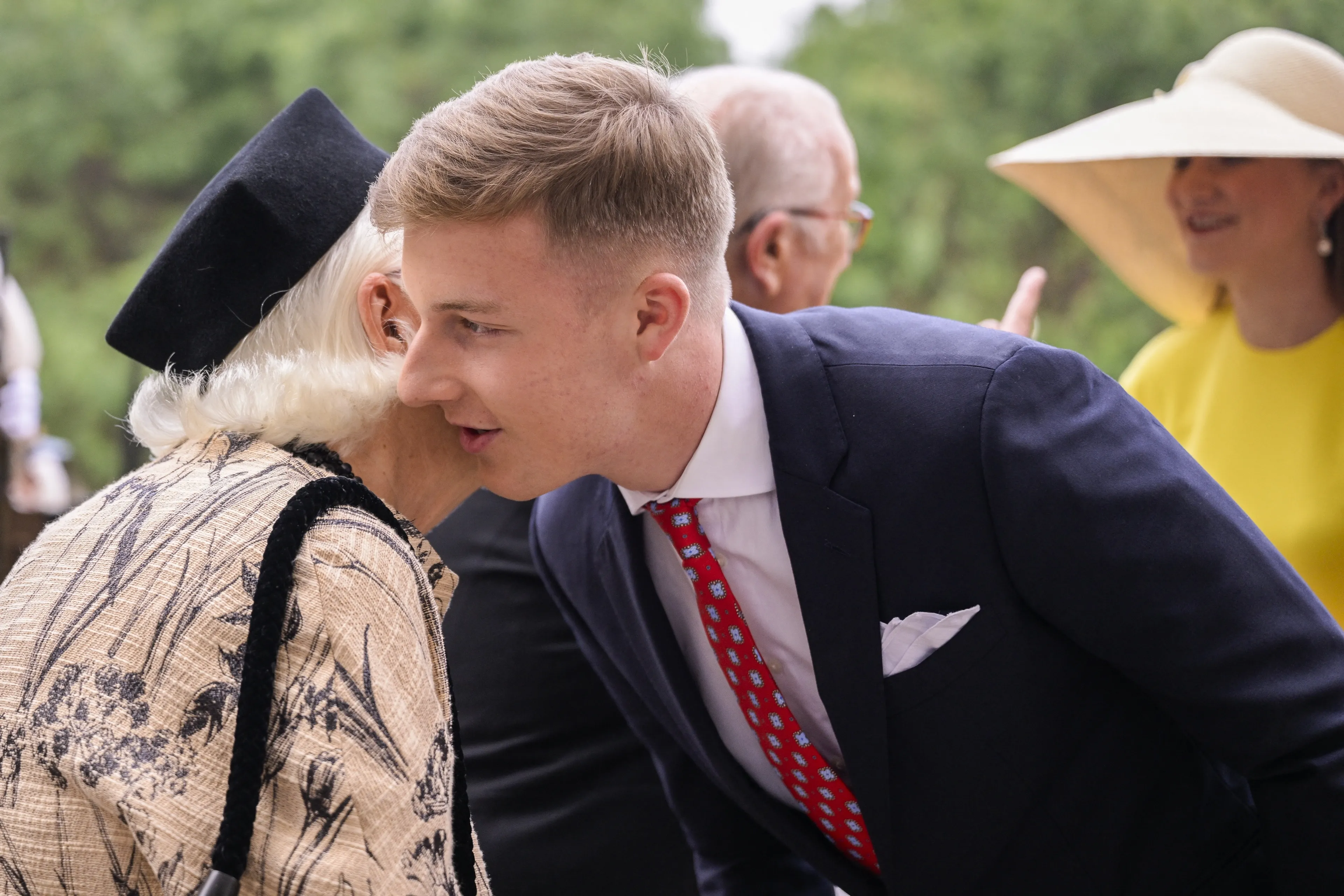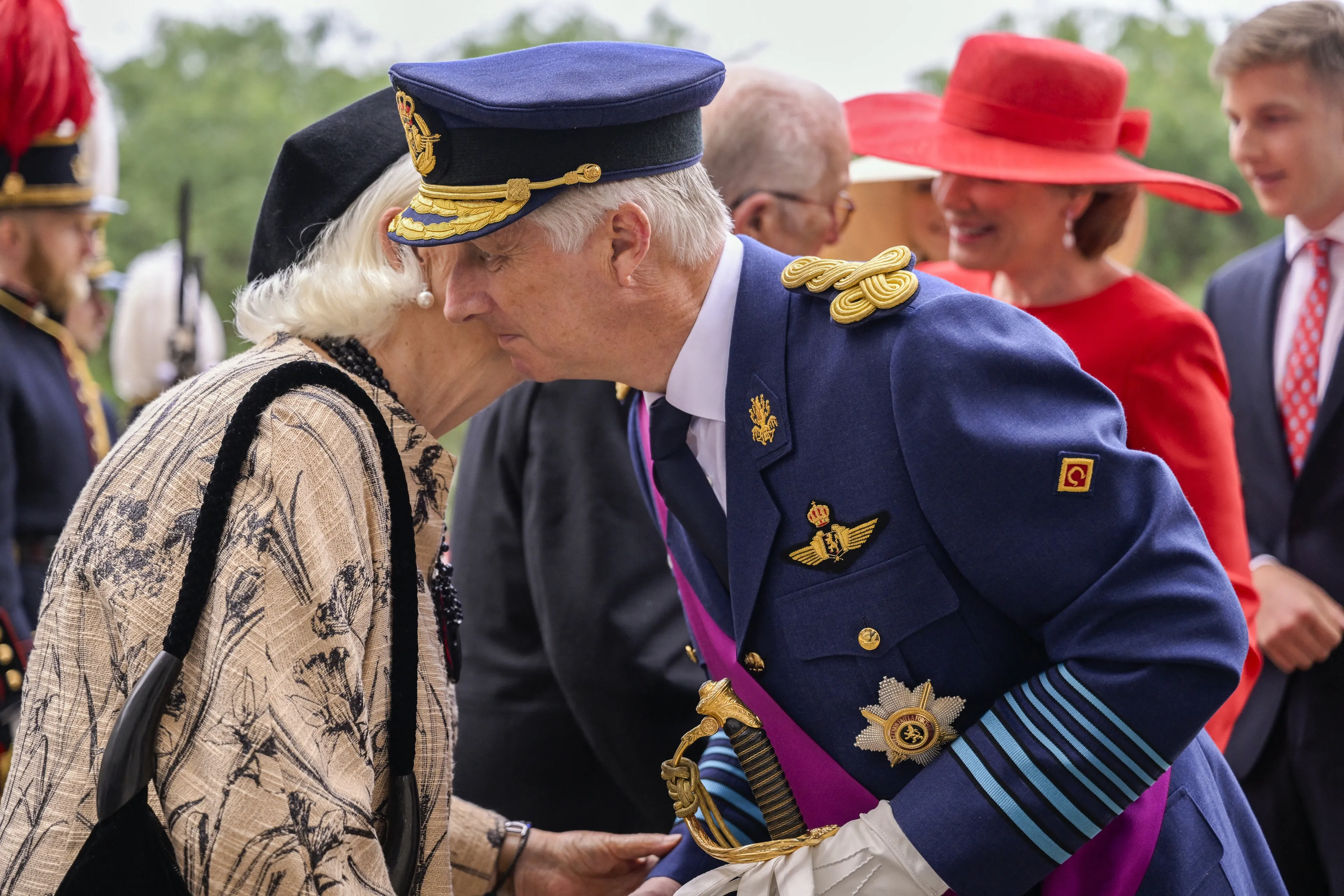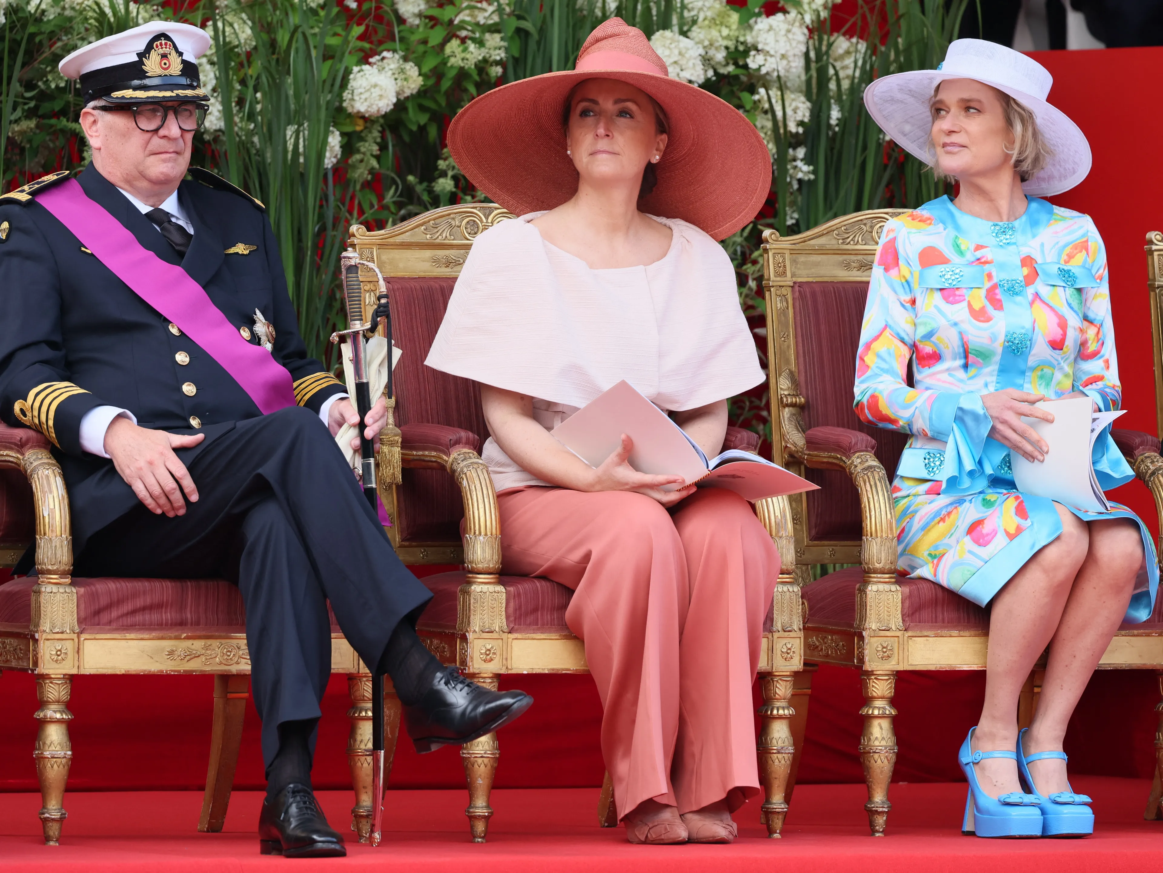 Ook prinses Astrid en prins Lorenz, prins Laurent en prinses Laurent en prinses Delphine en haar partner James O'Hare zijn hierbij aanwezig.