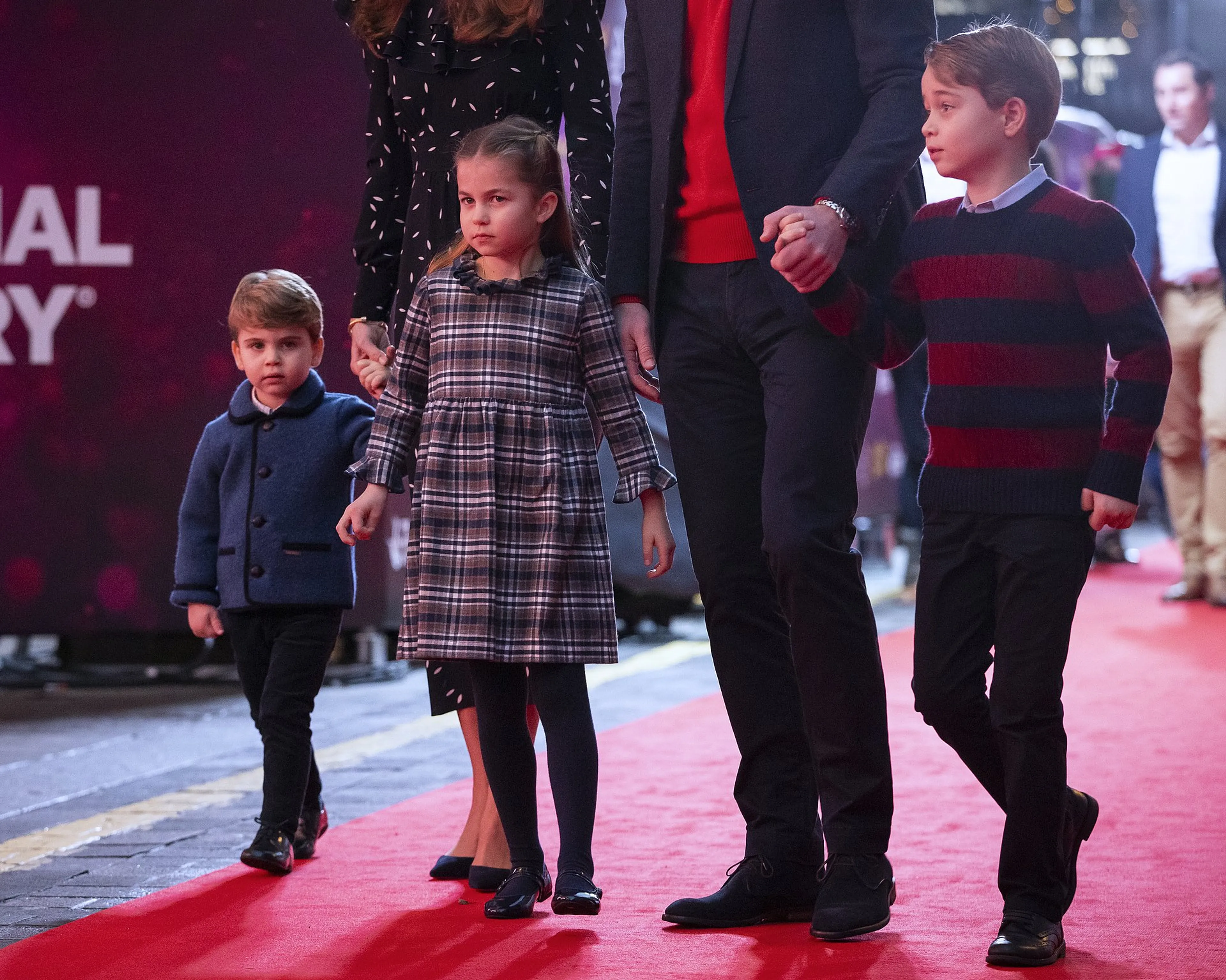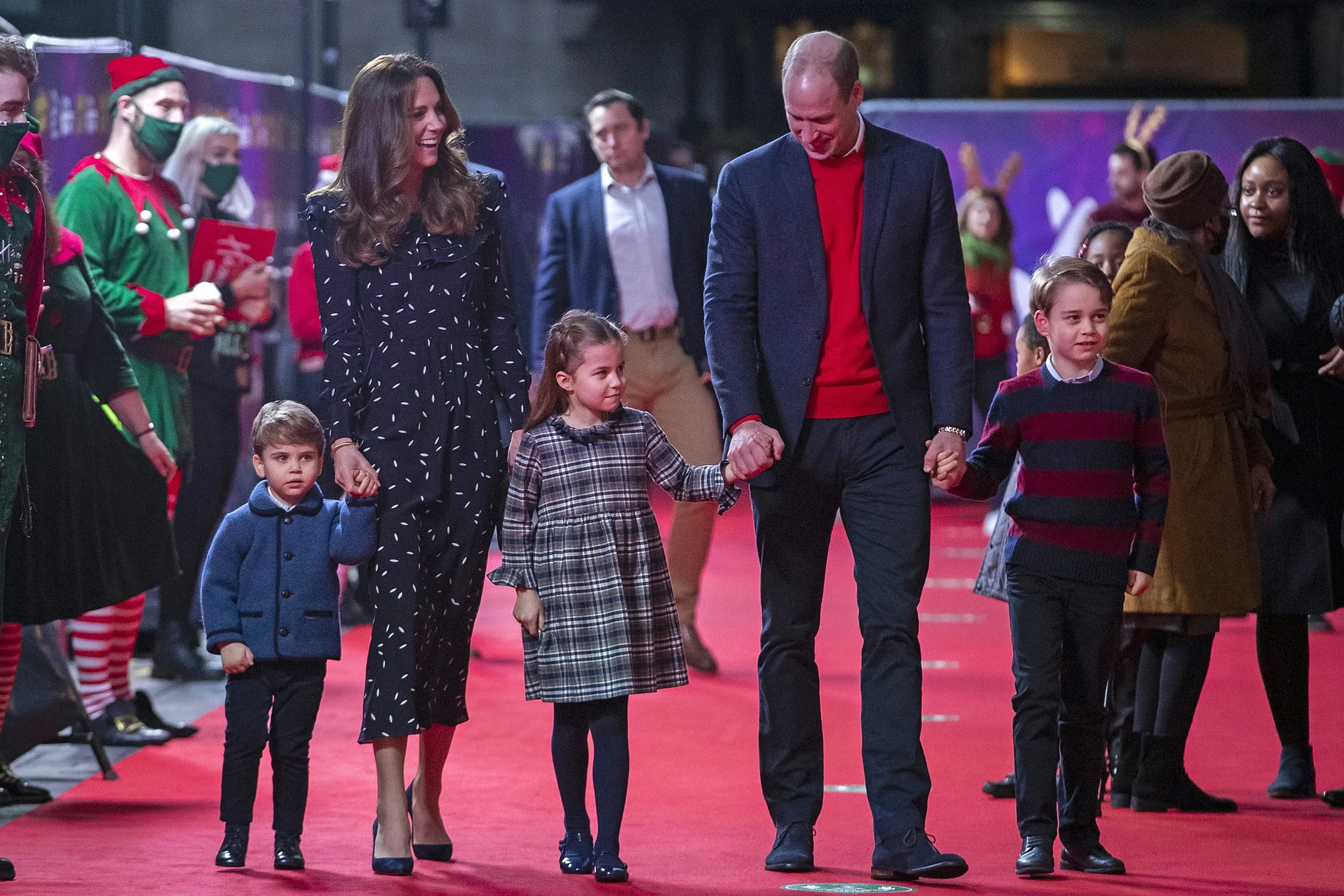 Een opvallend gezicht vrijdag bij het London Palladium. Prins William en Catherine stonden voor het eerst samen met hun kinderen George, Charlotte en Louis op de rode loper bij het theater. De familie ging daar kijken naar een speciale show, die werd opgevoerd om essentiële werkers en hun families te bedanken voor hun grote inzet dit jaar.