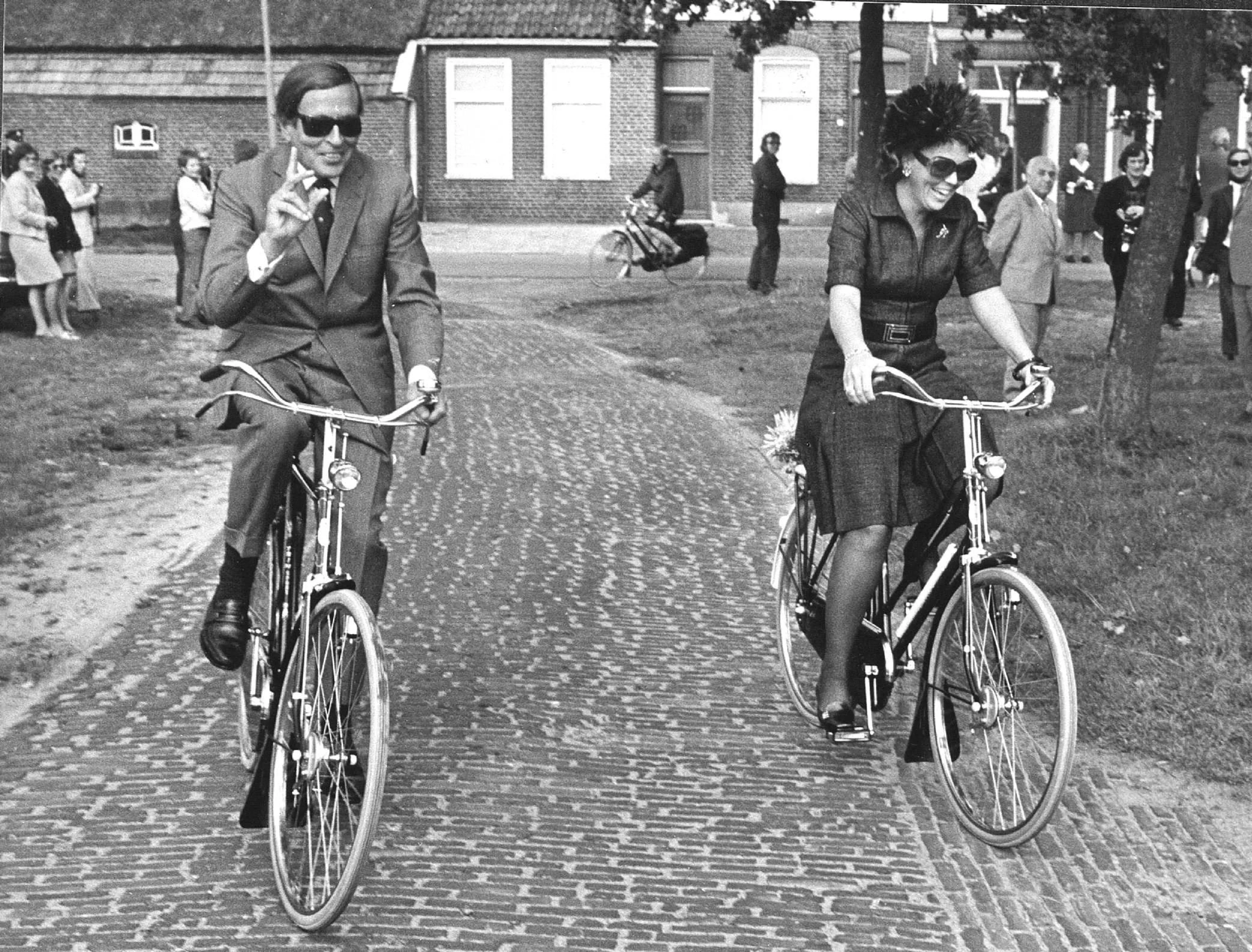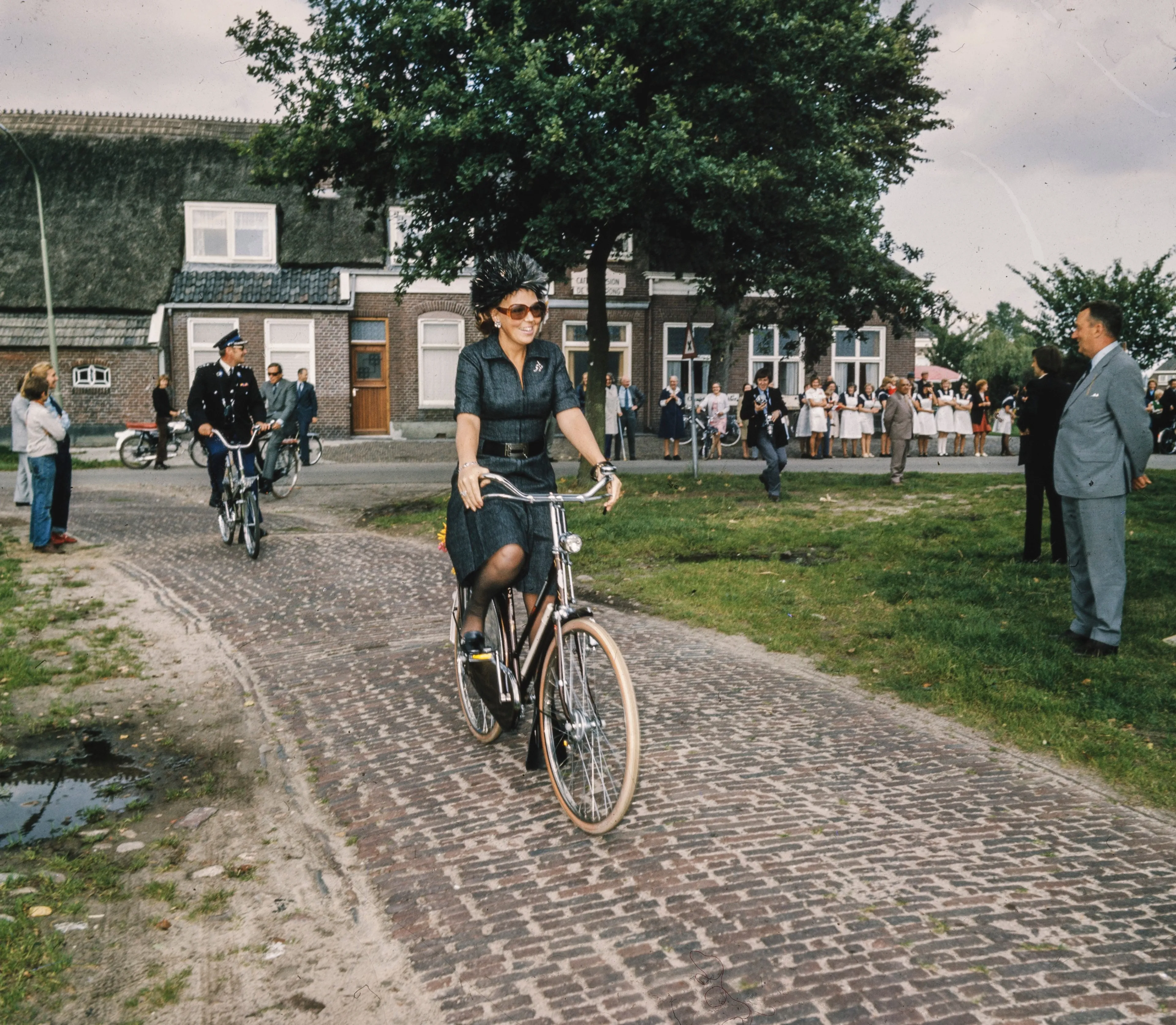 In 1973 zien we prinses Beatrix en prins Claus op de fiets tijdens een werkbezoek in Drenthe. Er wordt lovend gesproken over het feit dat het koppel juist in dé fietsprovincie van Nederland de fiets pakt. Alle aandacht die de fietsende Beatrix en Claus krijgen, is voor de provincie Drenthe dan ook goede promotie.