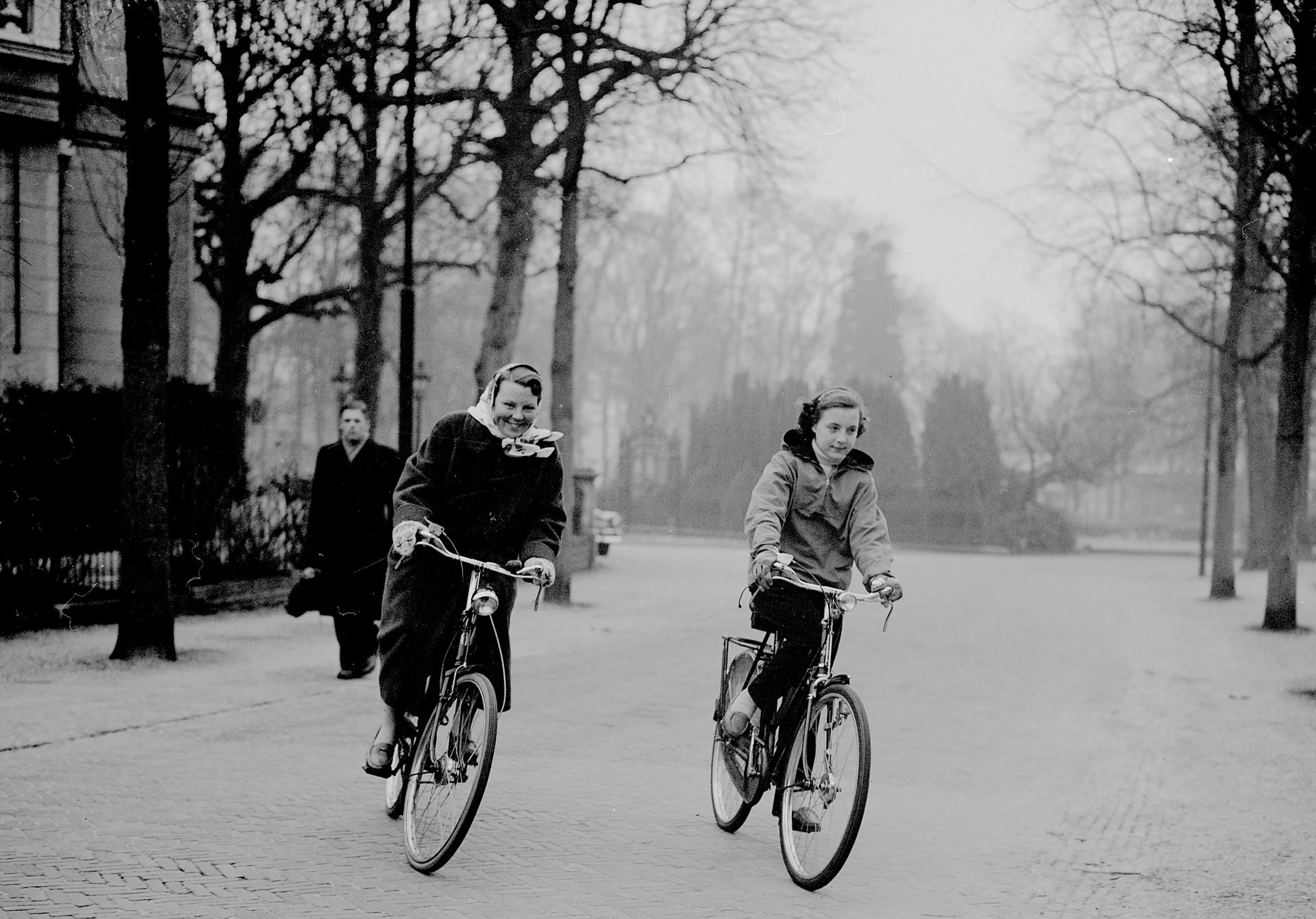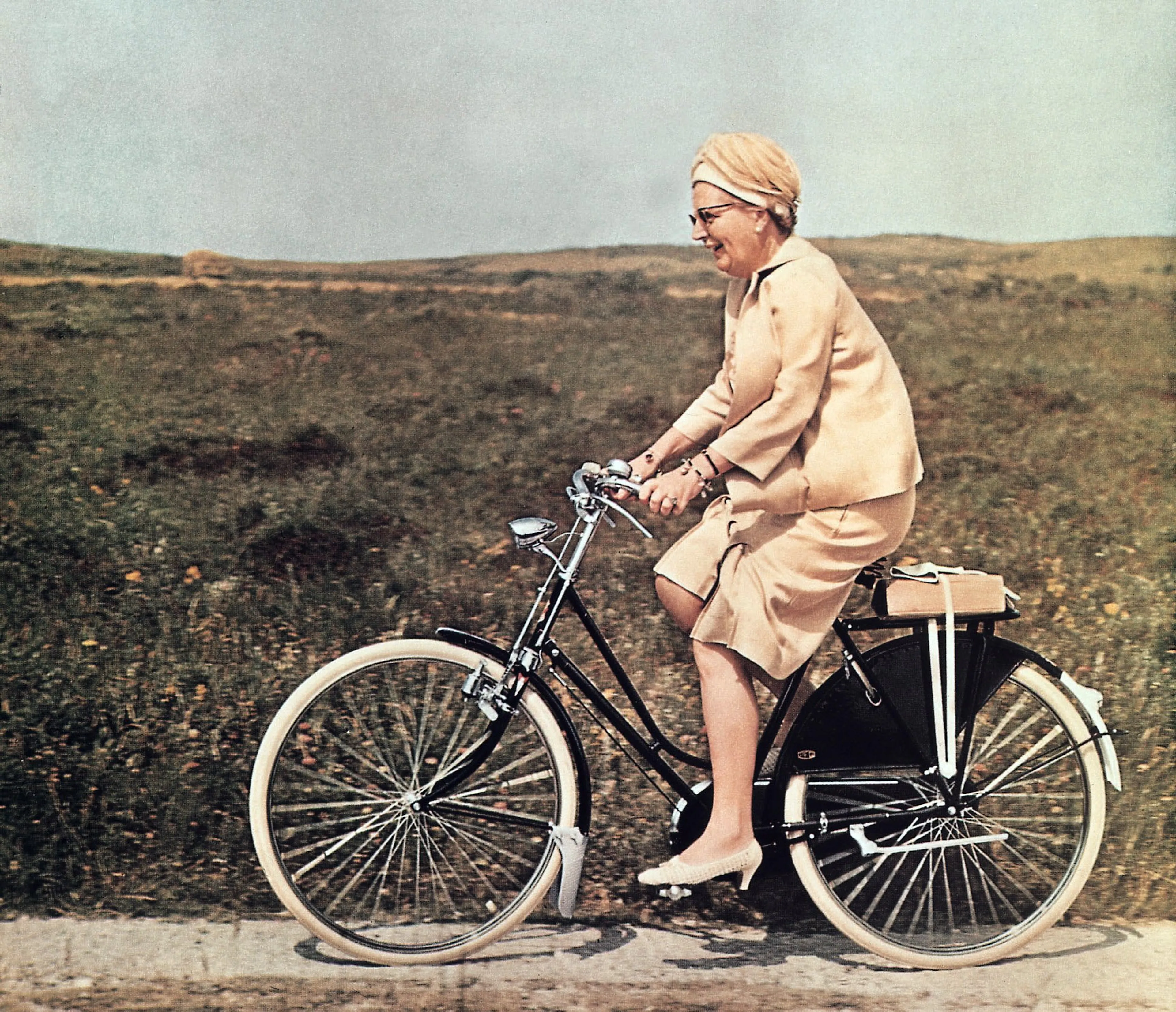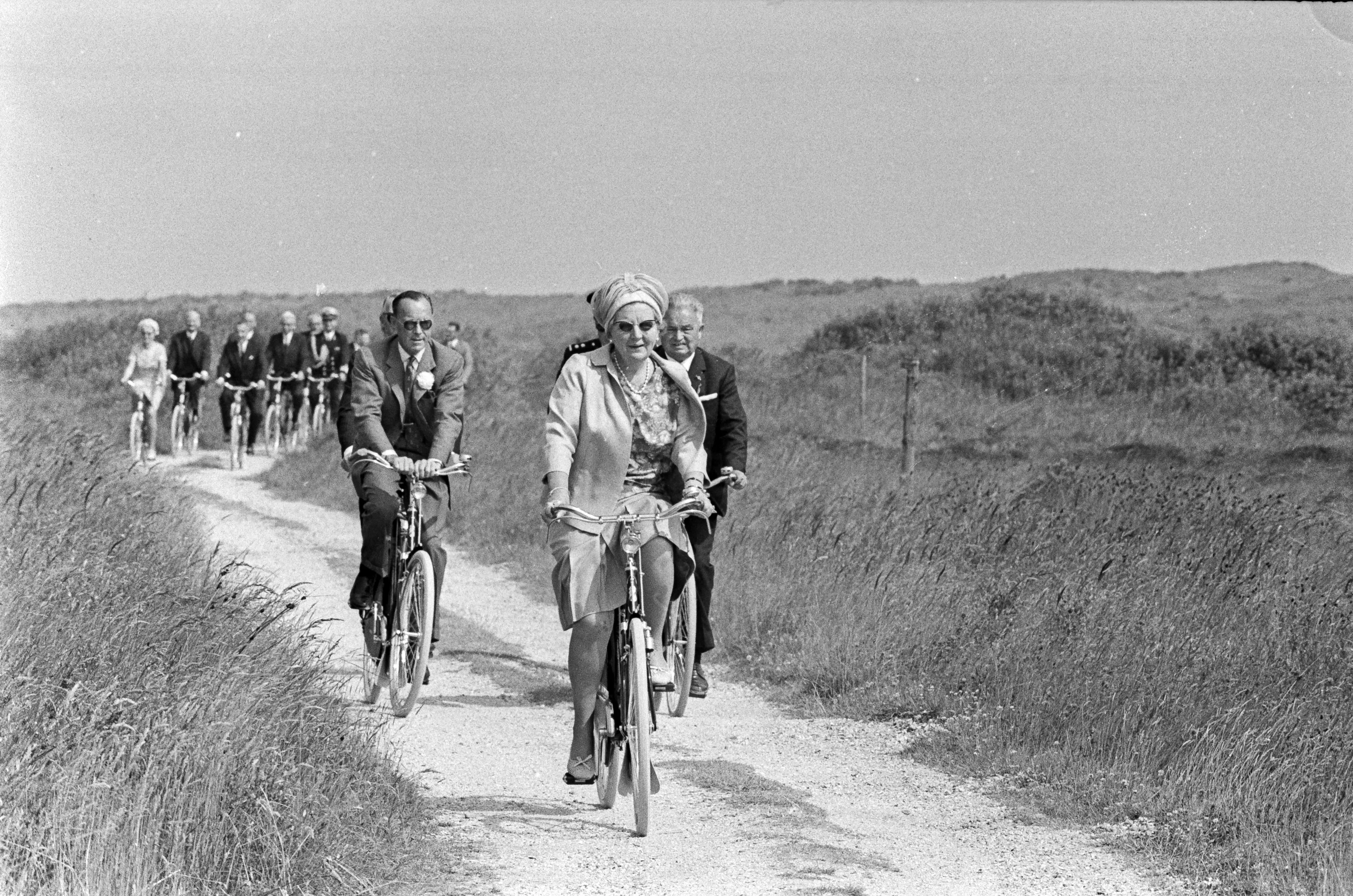 Nog een generatie verder terug zien we dat ook de grootmoeder van koning Willem-Alexander graag gebruik maakte van de fiets. Tijdens een werkbezoek aan Terschelling maakt koningin Juliana samen met prins Bernhard een fietstocht over het Waddeneiland.