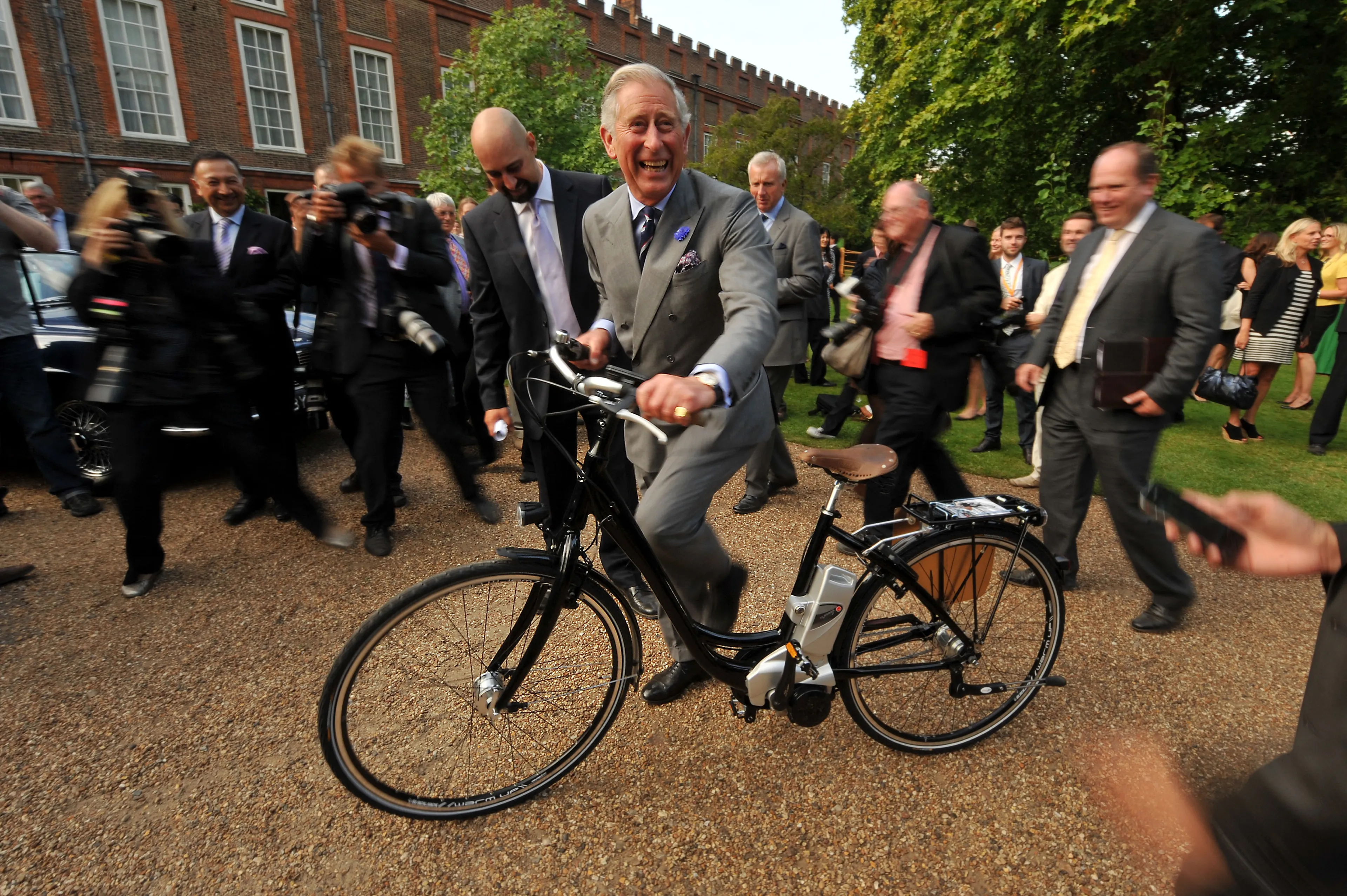 Waar de royals in Nederland en België kiezen voor de 'ouderwetse' fiets, geeft de huidige koning Charles de voorkeur aan de elektrische variant. In 2011 is te zien hoe de toenmalige prins een elektrische fiets uitprobeert.