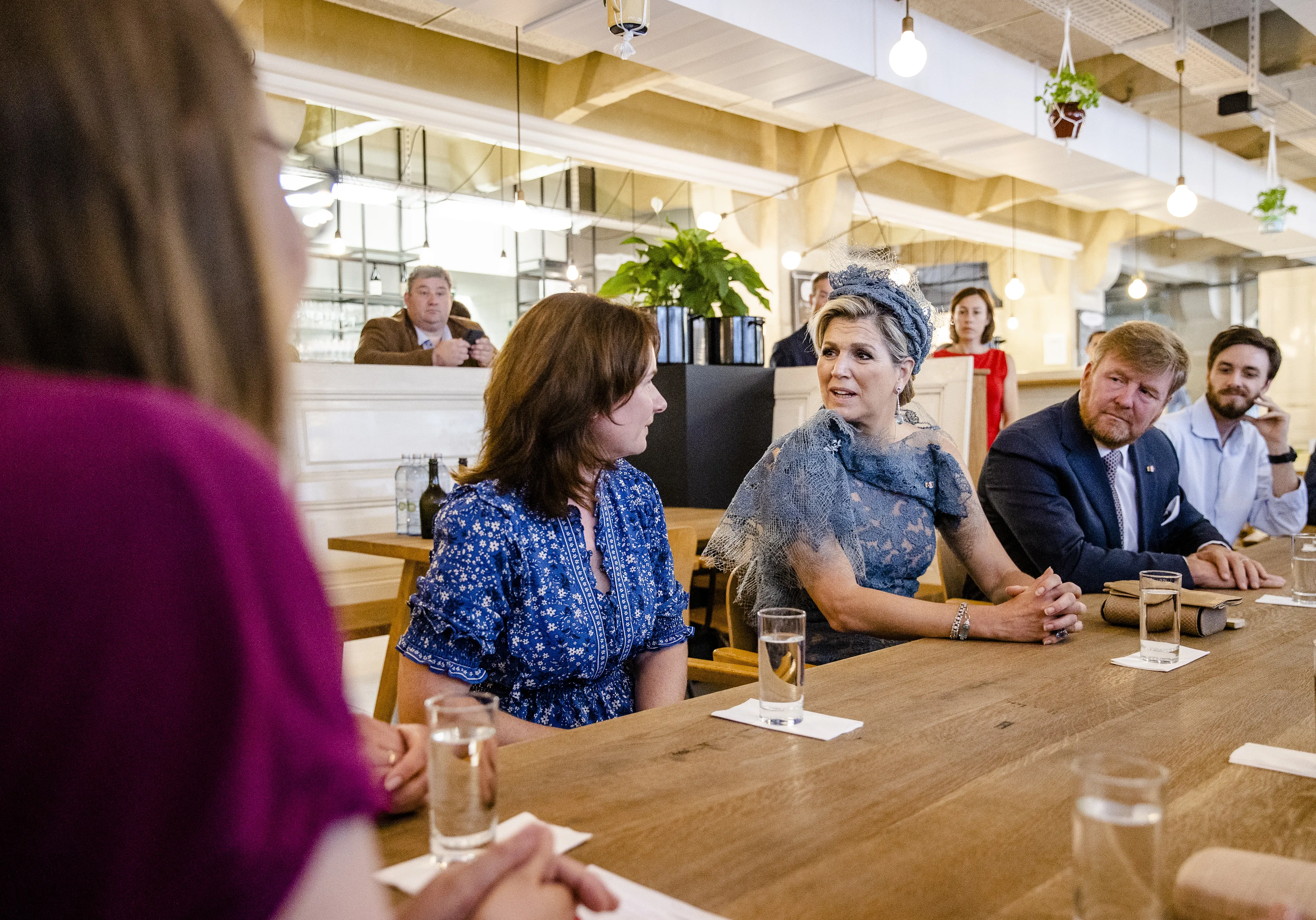 Aan het gesprek namen onder anderen een student, een docente en een actrice deel. Allen sloegen zij niet lang geleden op de vlucht voor het geweld in hun geboorteland. Willem-Alexander vroeg hen naar hun ervaringen in Oostenrijk en Máxima was benieuwd naar de rol van het buurthuis in hun leven nu. Actrice Anastasiia vertelde dat ze in de Brotfabrik met toneelspelen de gelegenheid krijgt om de ellende van zich af te spelen.
