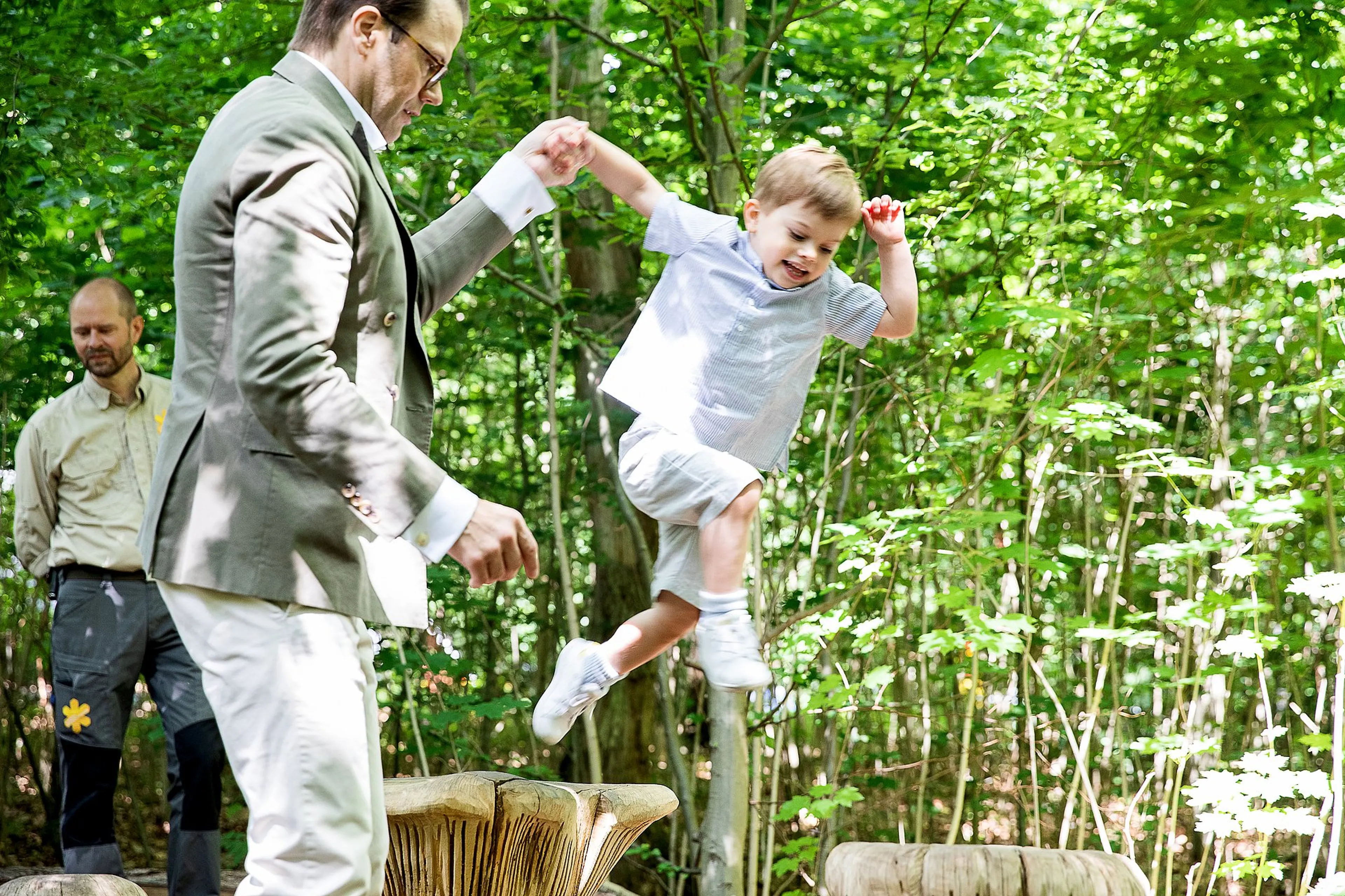 De Zweedse prins Daniel wordt in 2016 vader van zijn zoon Oscar. De twee zijn vanaf zijn geboorte al onlosmakelijk met elkaar verbonden. Beiden hebben de naam Olof in hun naam. Vader en zoon gaan er graag samen op uit. Het liefst de natuur in, bij het Hagapaleis of zoals in de foto hieronder, ravotten in de speeltuin. In 2017 bezoekt prins Oscar samen met zijn ouders de naar hem vernoemde natuurspeeltuin in Skåne. Oscar ontdekt de speeltuin met zijn vader aan zijn zij.