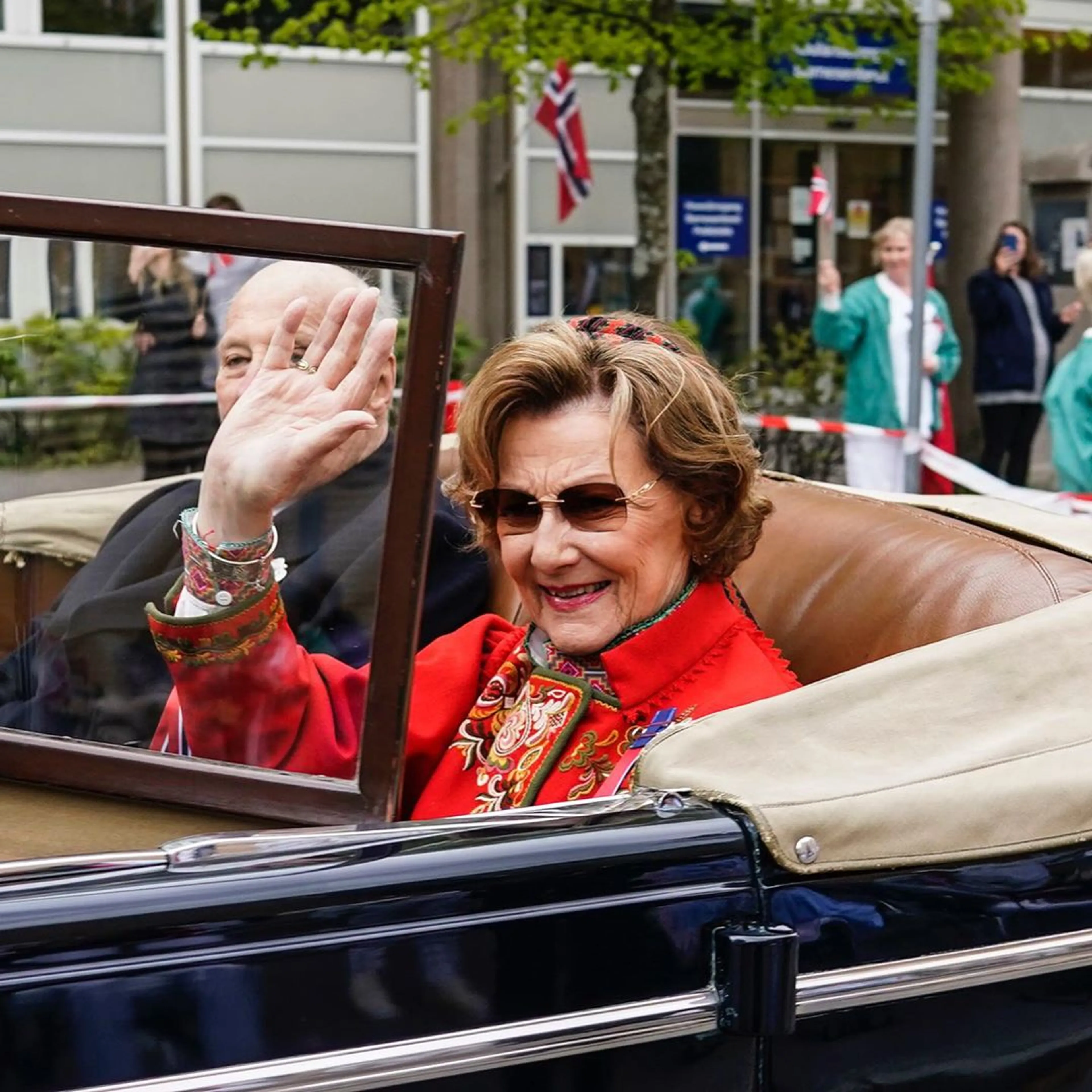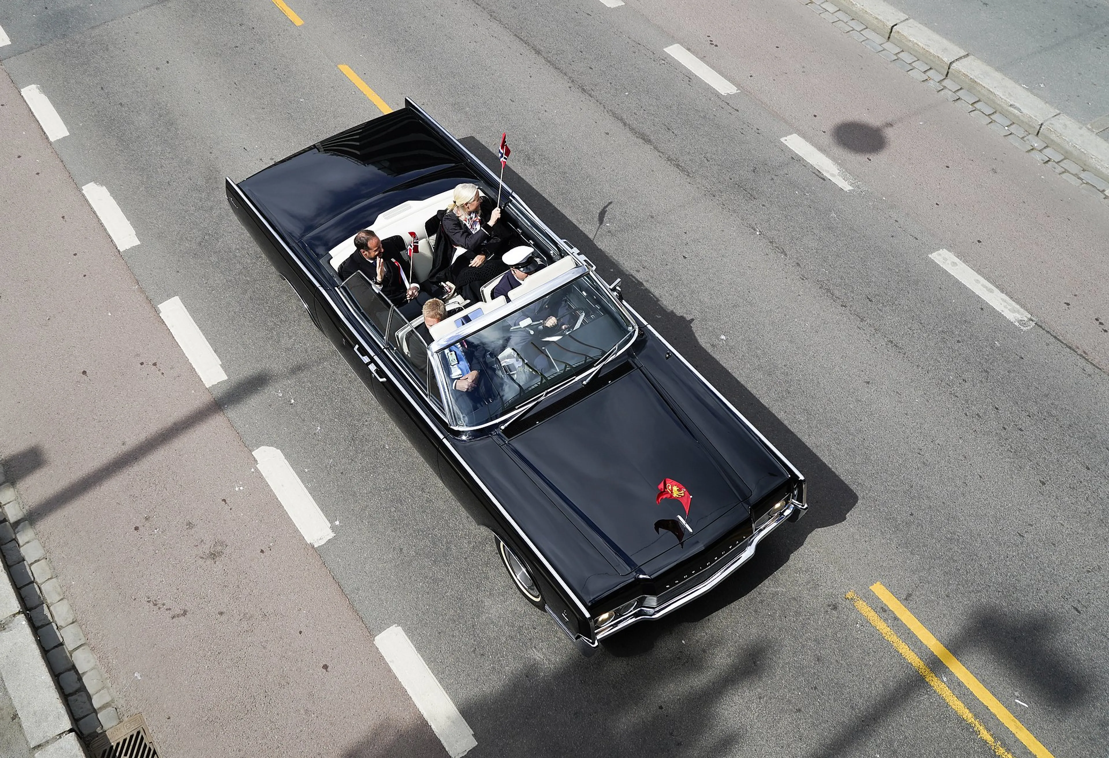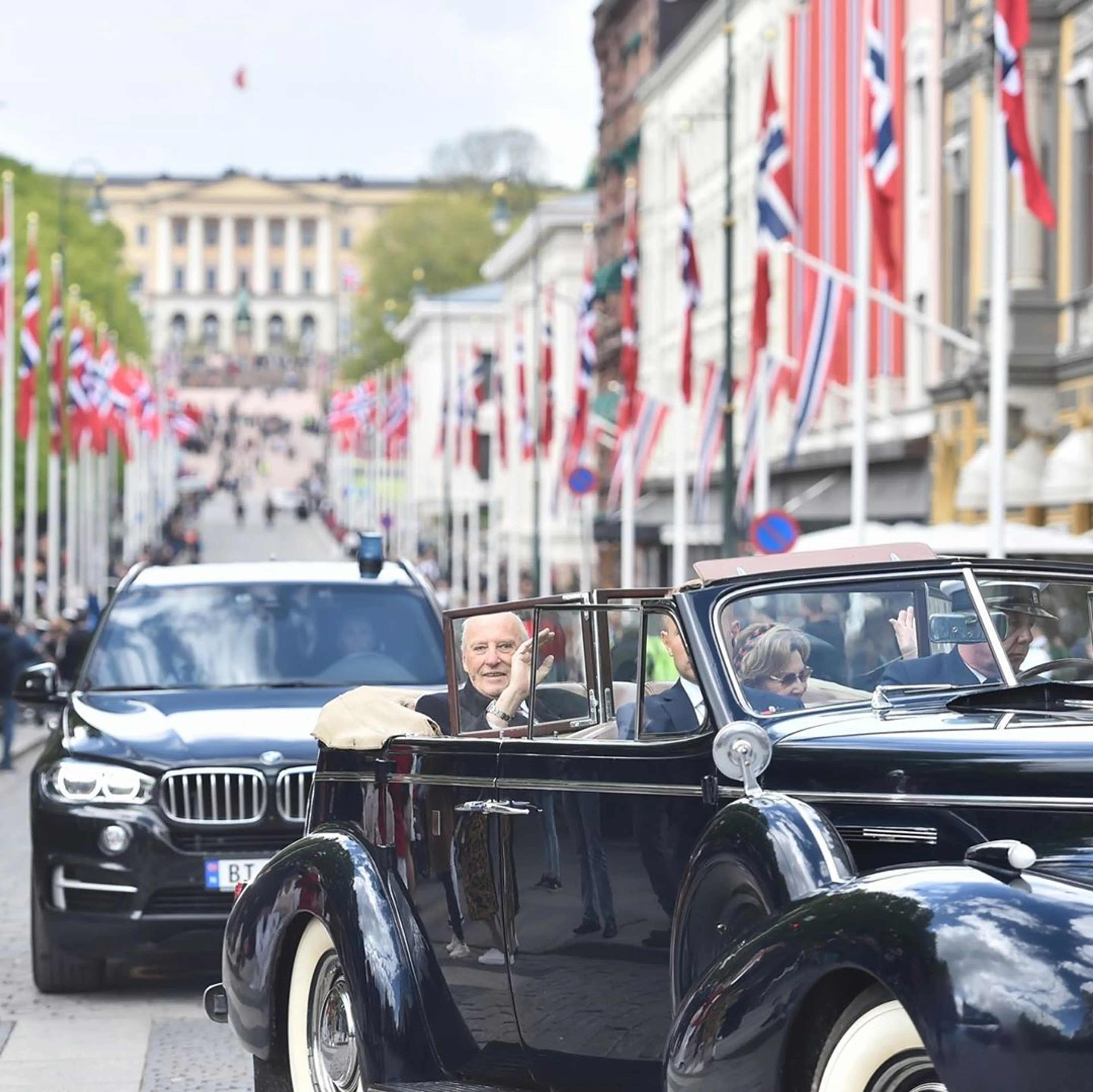 Meteen daarna stapte het koningspaar in de gereedstaande Roadmaster, een oldtimer met open dak uit 1939 - die vanwege de nummerplaat wordt aangeduid met A1 - voor een korte rijtoer. De auto had op 7 juni 1945 de toenmalige koninklijke familie bij terugkeer na de Tweede Wereldoorlog ook door de straten van de hoofdstad gereden. Koning Harald en koningin Sonja werden gevolgd door het kroonprinselijk paar in eveneens open A5, een Lincoln Continental waarin ze ook bij hun huwelijk hadden gereden.