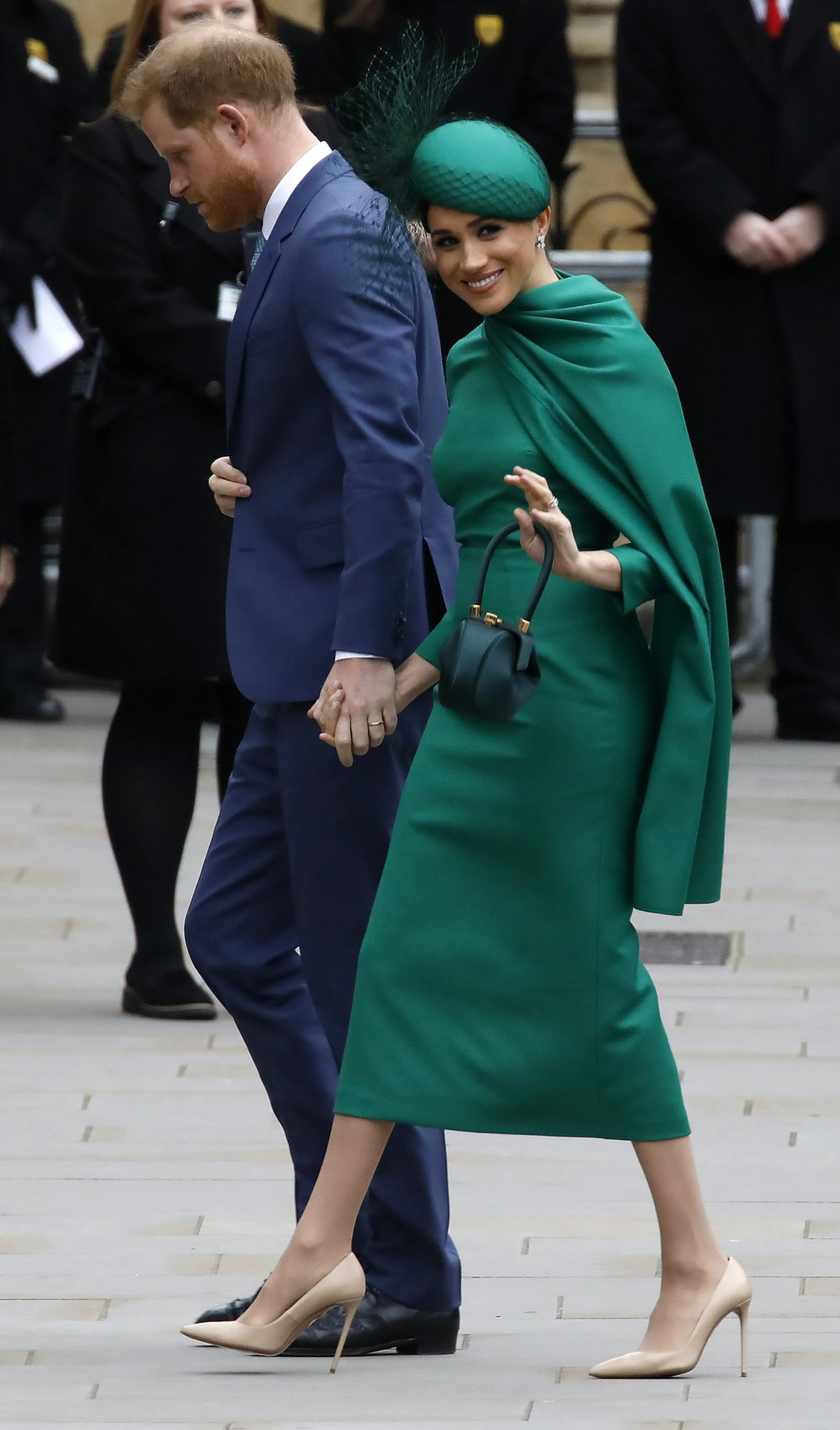 Op maandag sluiten Harry en Meghan hun afscheidsronde af op in de Westminster Abbey in Londen. Daar is een dienst voor de Commonwealth Day. Meghan, de hertogin van Sussex draagt voor de gelegenheid een groene jurk van Emilia Wickstead en een bijzondere hoed van William Chambers.