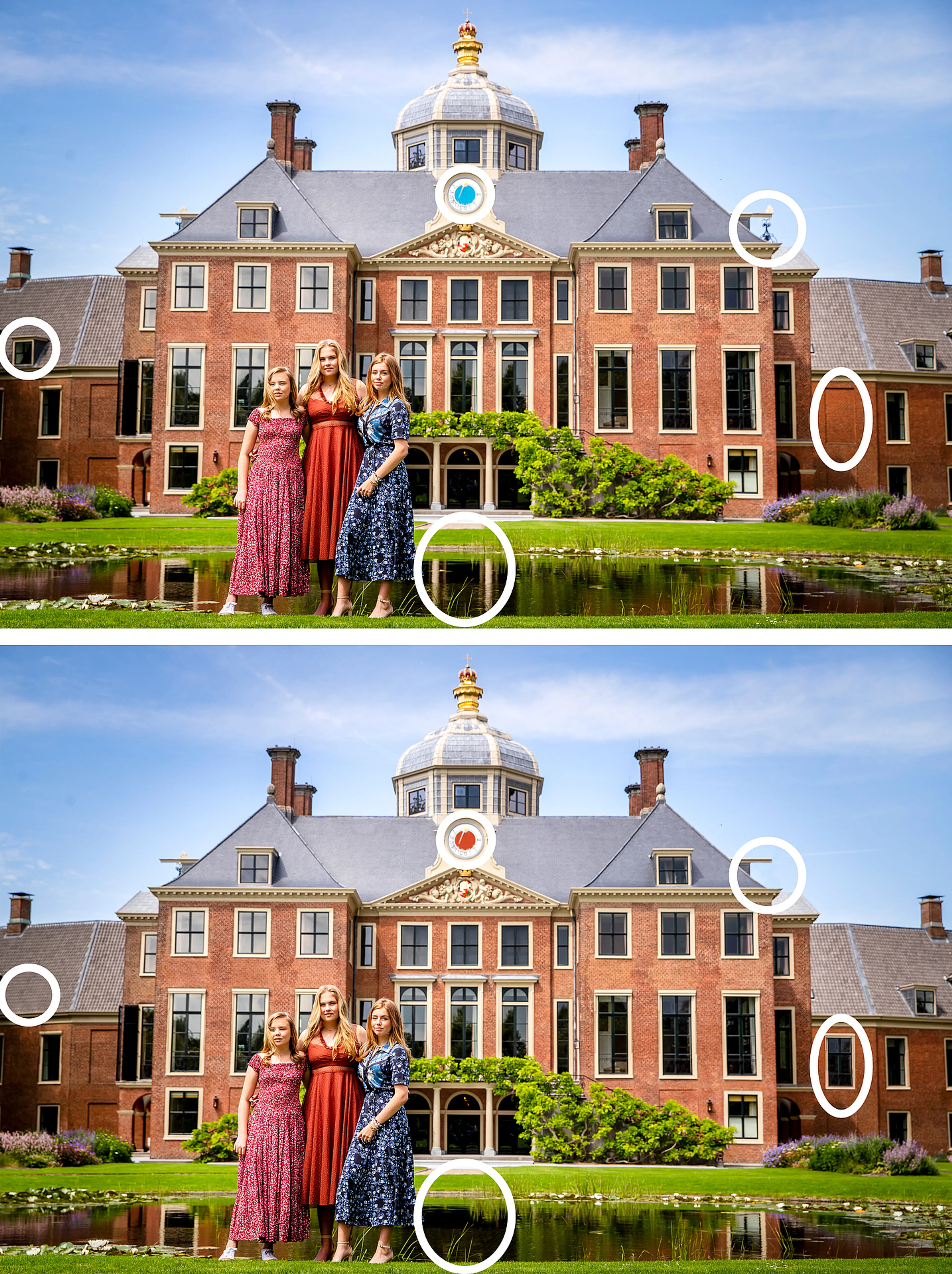 Heb je zin in een leuke uitdaging of ben je op zoek naar wat tijdverdrijf? Zoek dan de vijf verschillen tussen de twee onderstaande afbeeldingen van onze prinsessen Amalia, Alexia en Ariane. Niet alles is wat het lijkt...
