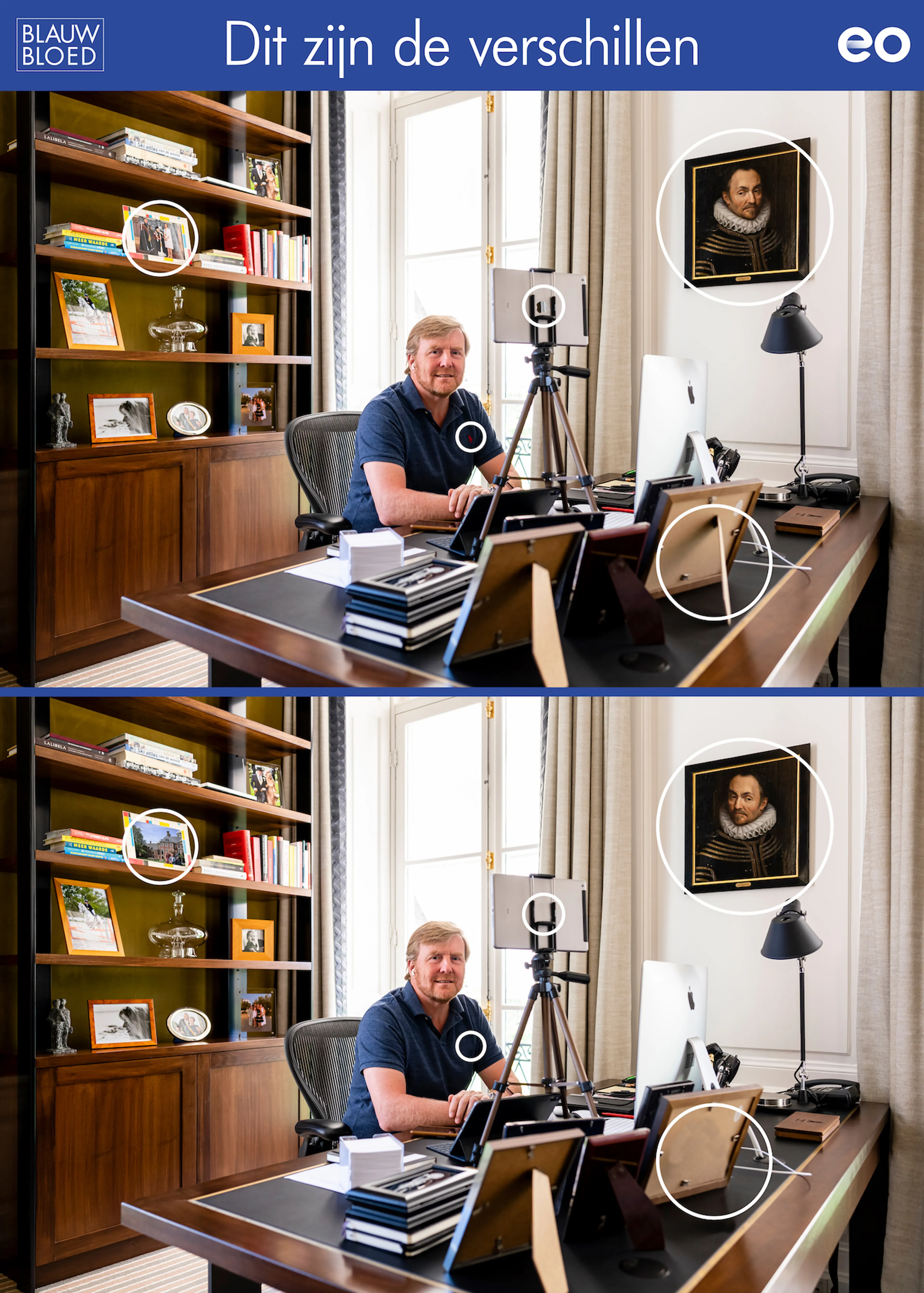 Deze unieke foto’s zijn gemaakt in hun werkkamers in Paleis Huis ten Bosch. Op de plaatjes is best veel opvallends te zien. Wij zagen onze kans schoon om weer een leuke 'Zoek de verschillen' te maken. Aan jou de taak om de vijf verschillen te vinden. Niet alles is wat het lijkt... veel succes!