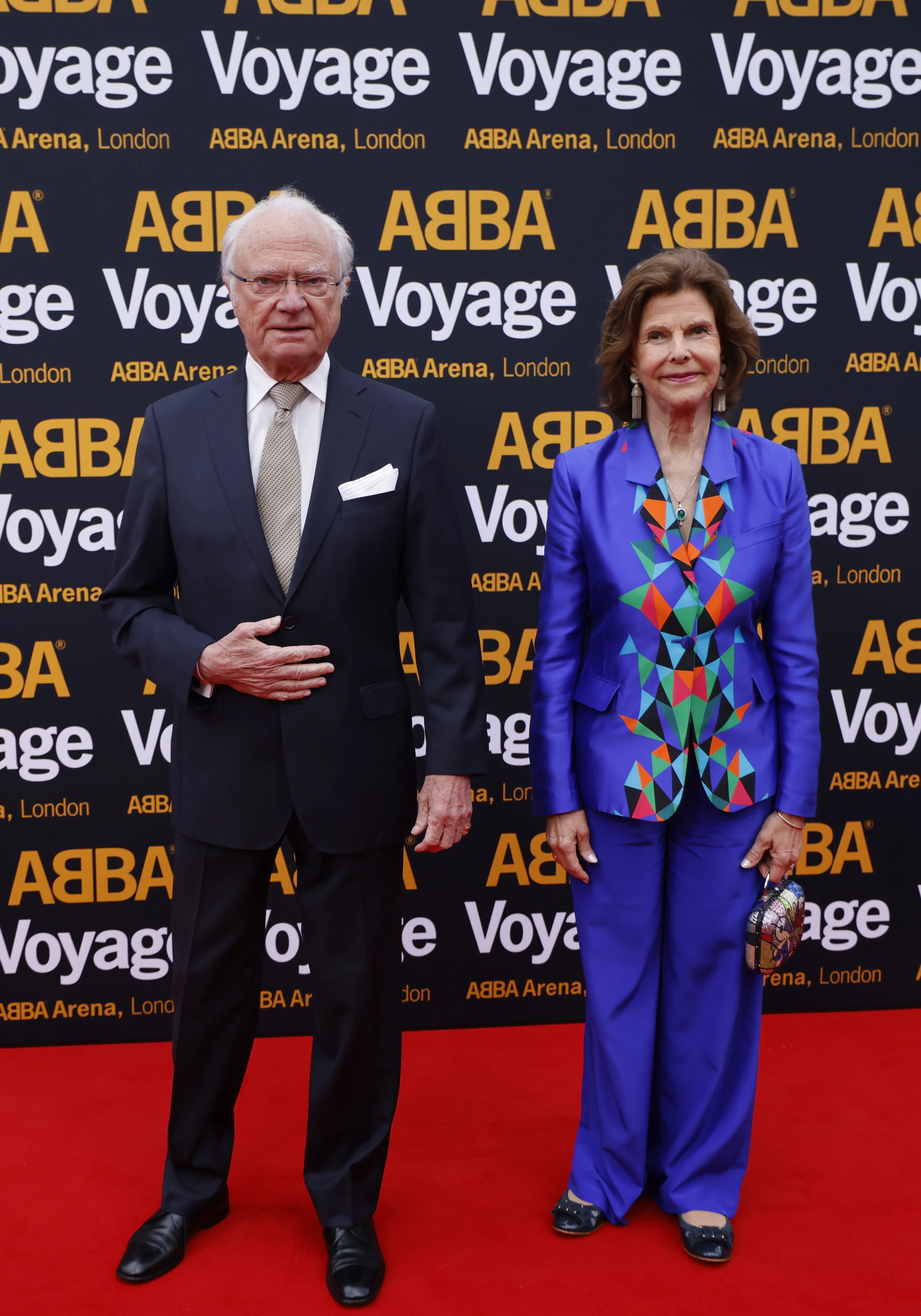 De Zweedse koning Carl Gustaf en zijn vrouw koningin Silvia waren donderdagavond bij de première van ABBA Voyage. De hologrammentournee van de Zweedse band werd geopend in de speciaal gebouwde ABBA Arena in Londen. ABBA-leden Agnetha Fältskog (72), Anni-Frid Lyngstad (76), Björn Ulvaeus (77) en Benny Andersson (75) werden zelf ook voor het eerst in 36 jaar weer samen op de foto gezet.